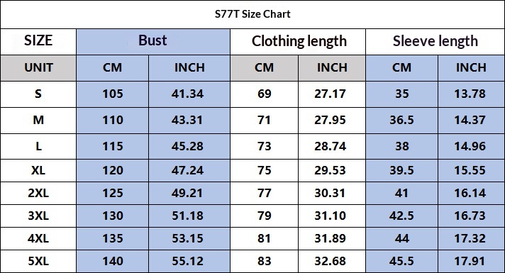 Sizes: S, M, L, XL, 2XL, 3XL, 4XL, 5XL