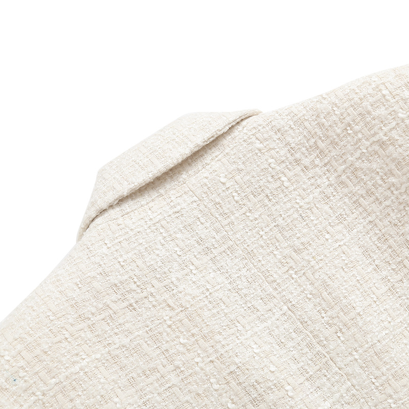 0 Review for Womens 4-Color Textured Double-Breasted Midi Blazer