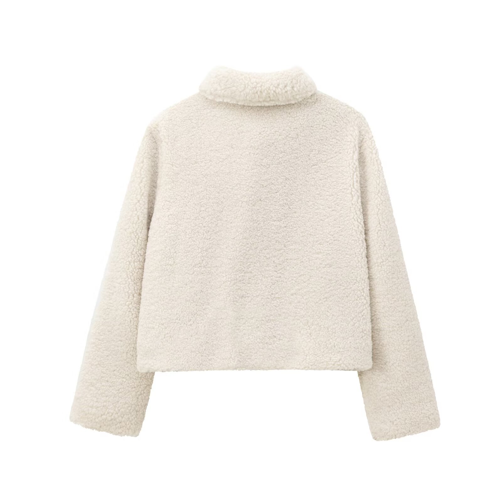 Womens All-Match Fleece Thermal Turtleneck Long-Sleeve Fluffy Short Coat For FallWinter