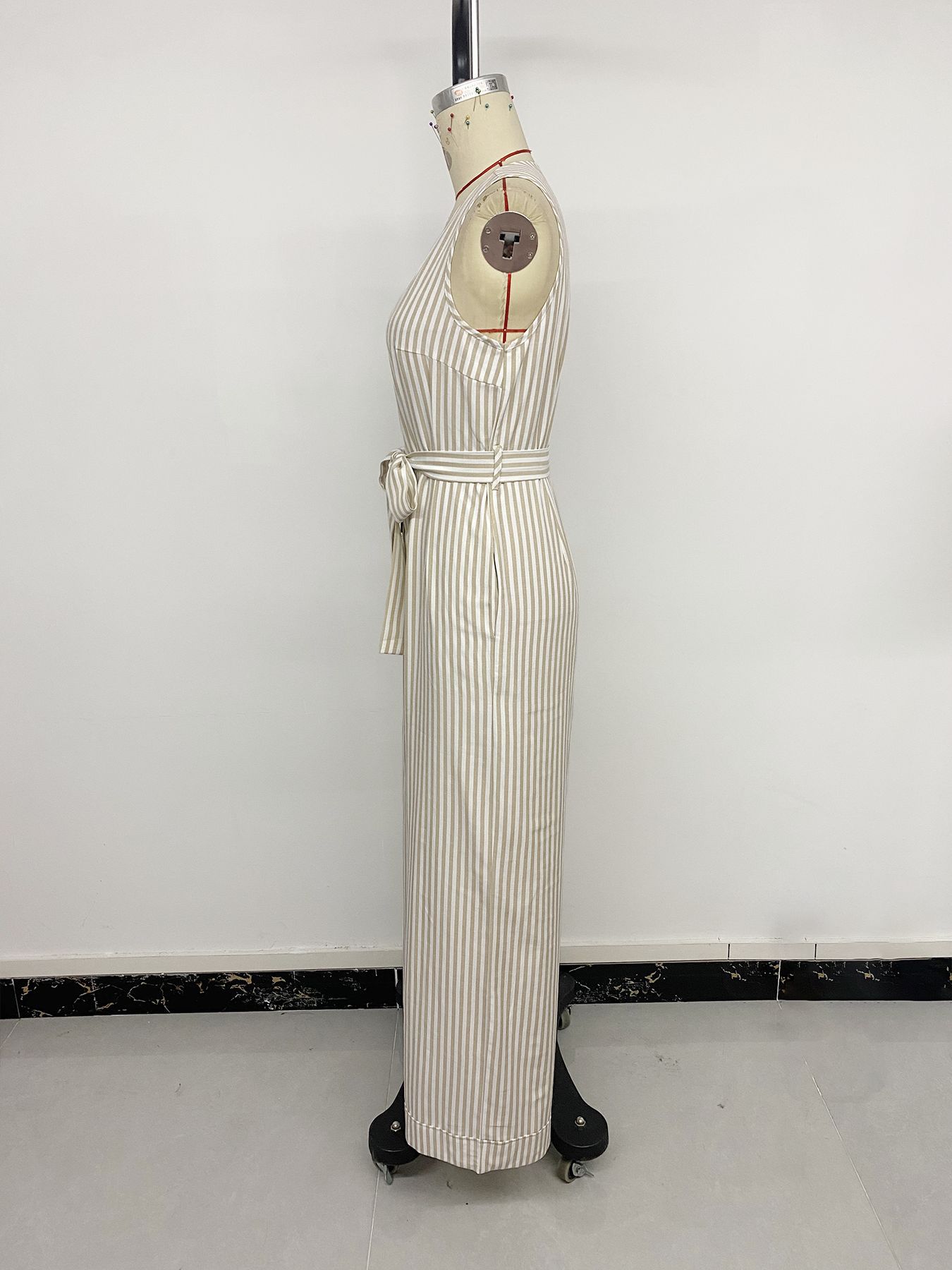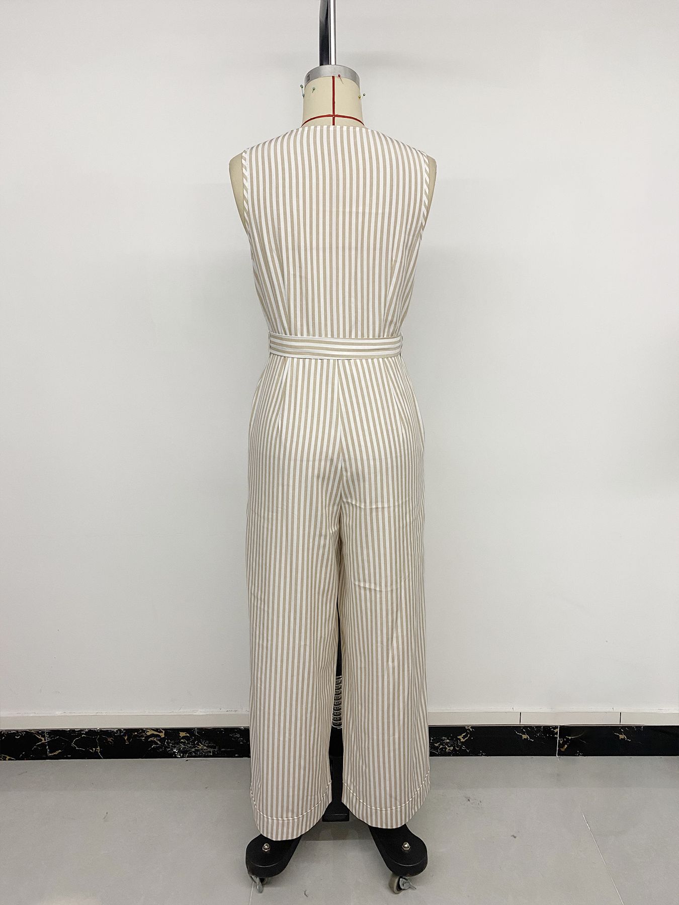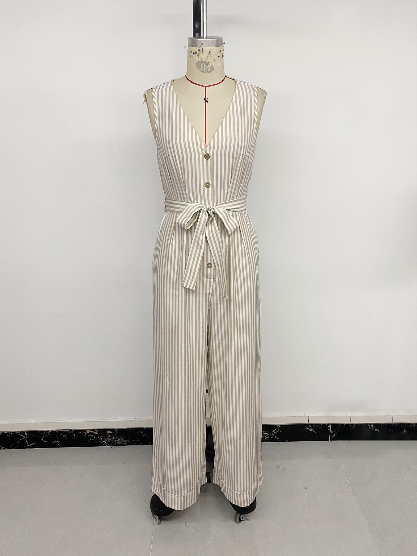 0 Review for Womens Casual Minimalist Striped Jumpsuit