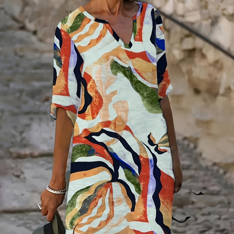 0 Review for Womens Casual Relaxed-fit Elegant V-neck Dress