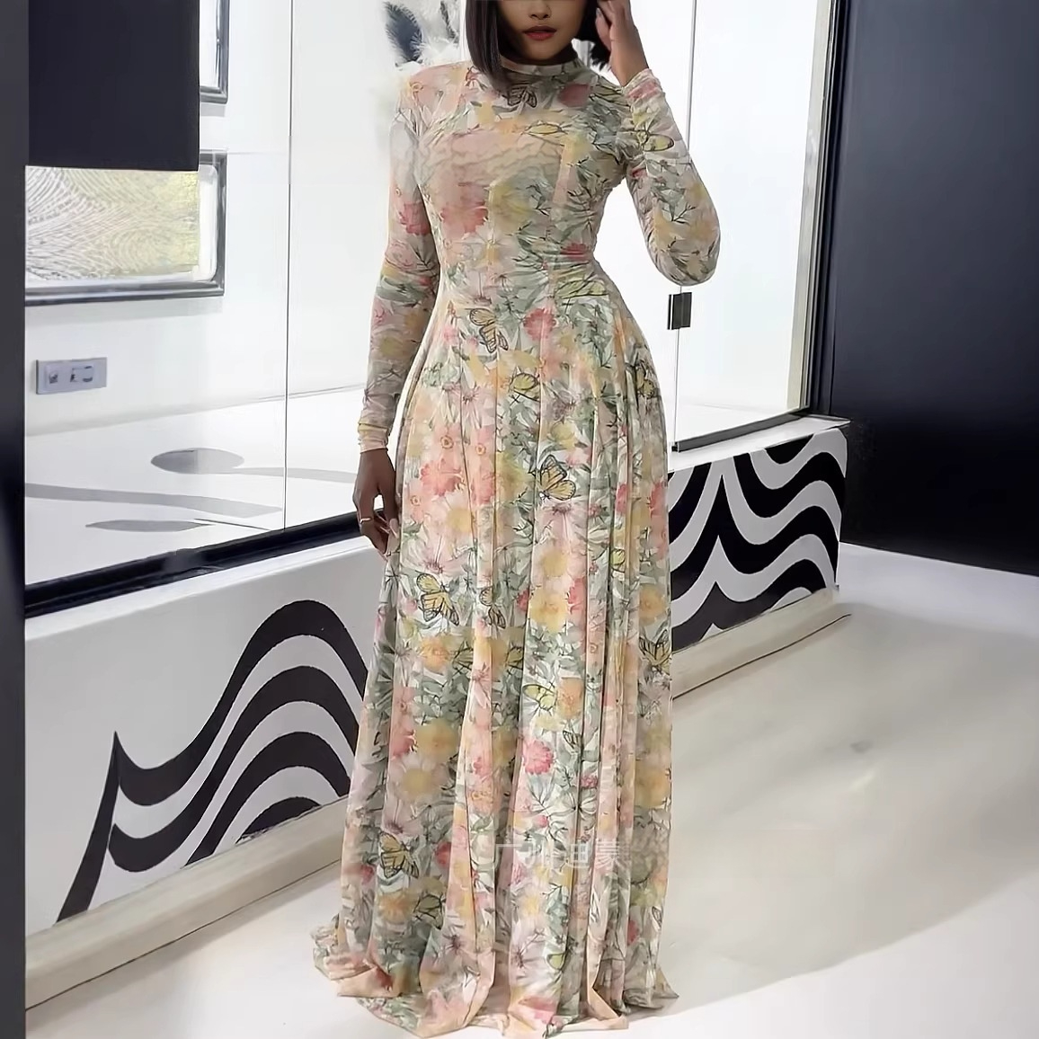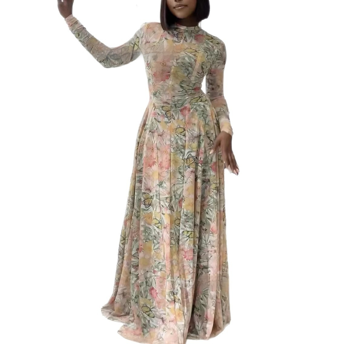 Womens Clothing Figure-hugging Slimming A-line Skirt With A High Neck And Long Dress