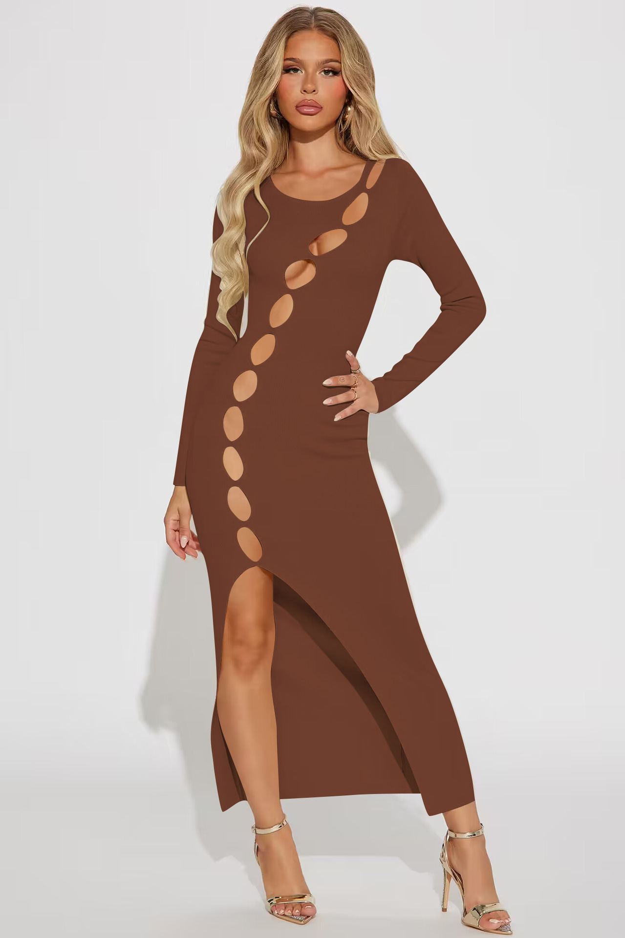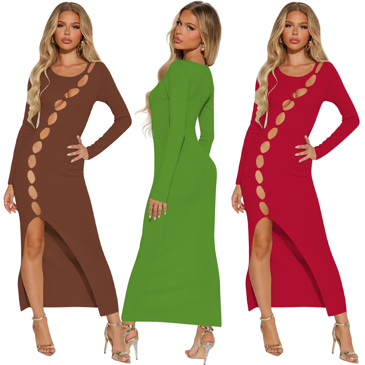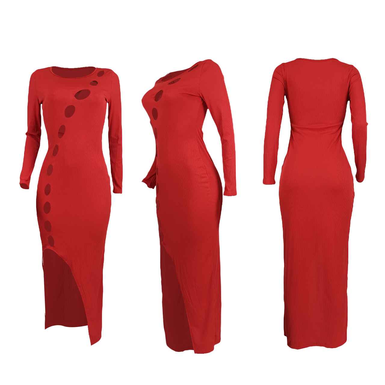 0 Review for Womens Cut-Out Slit And Hollowed-Out Dress