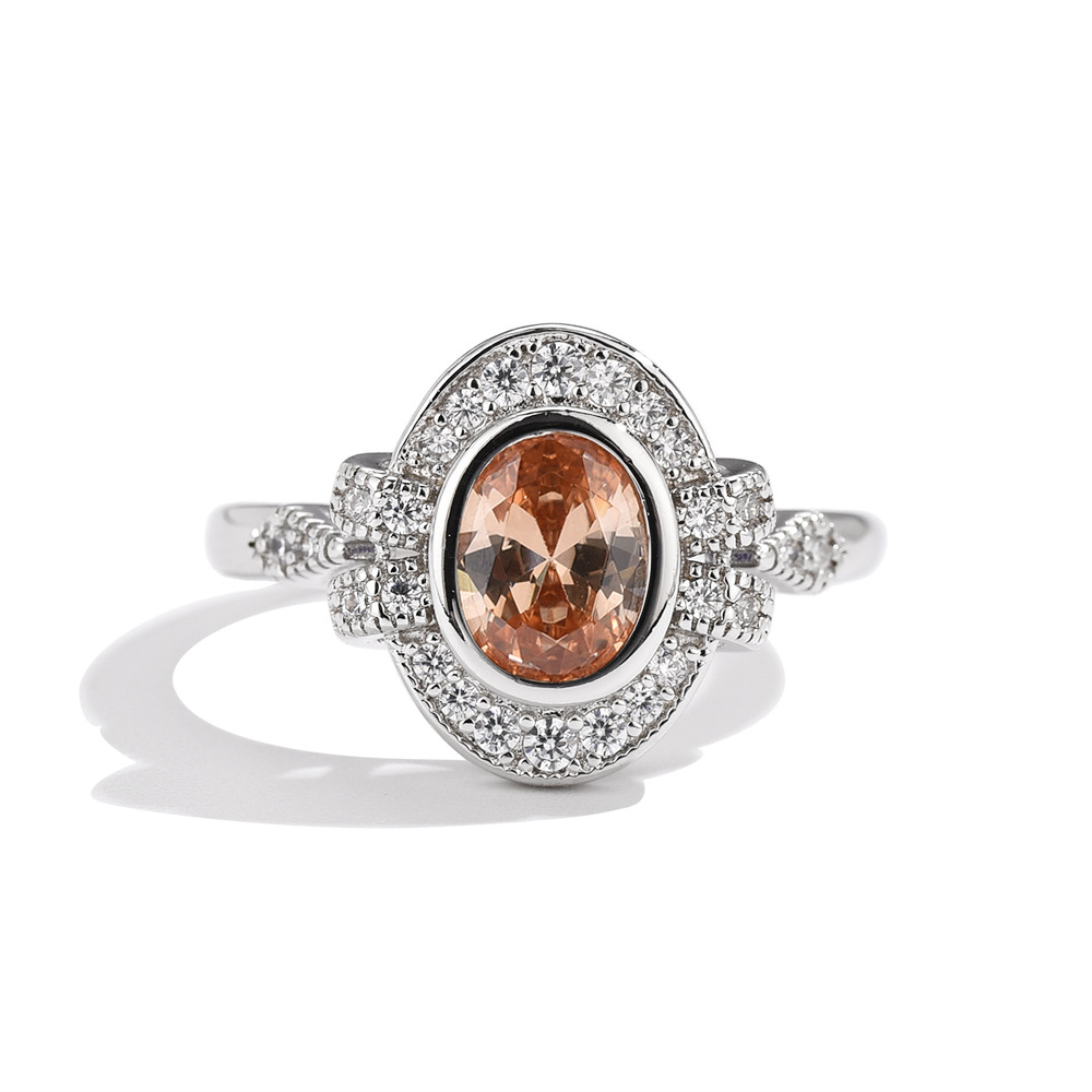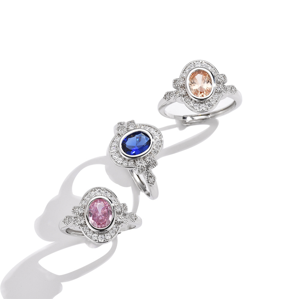 Color: White gold band with pink zircon (precision-enhanced electroplating), white gold band with blue zircon (precision-enhanced electroplating), white gold band with champagne zircon (precision-enhanced electroplating)