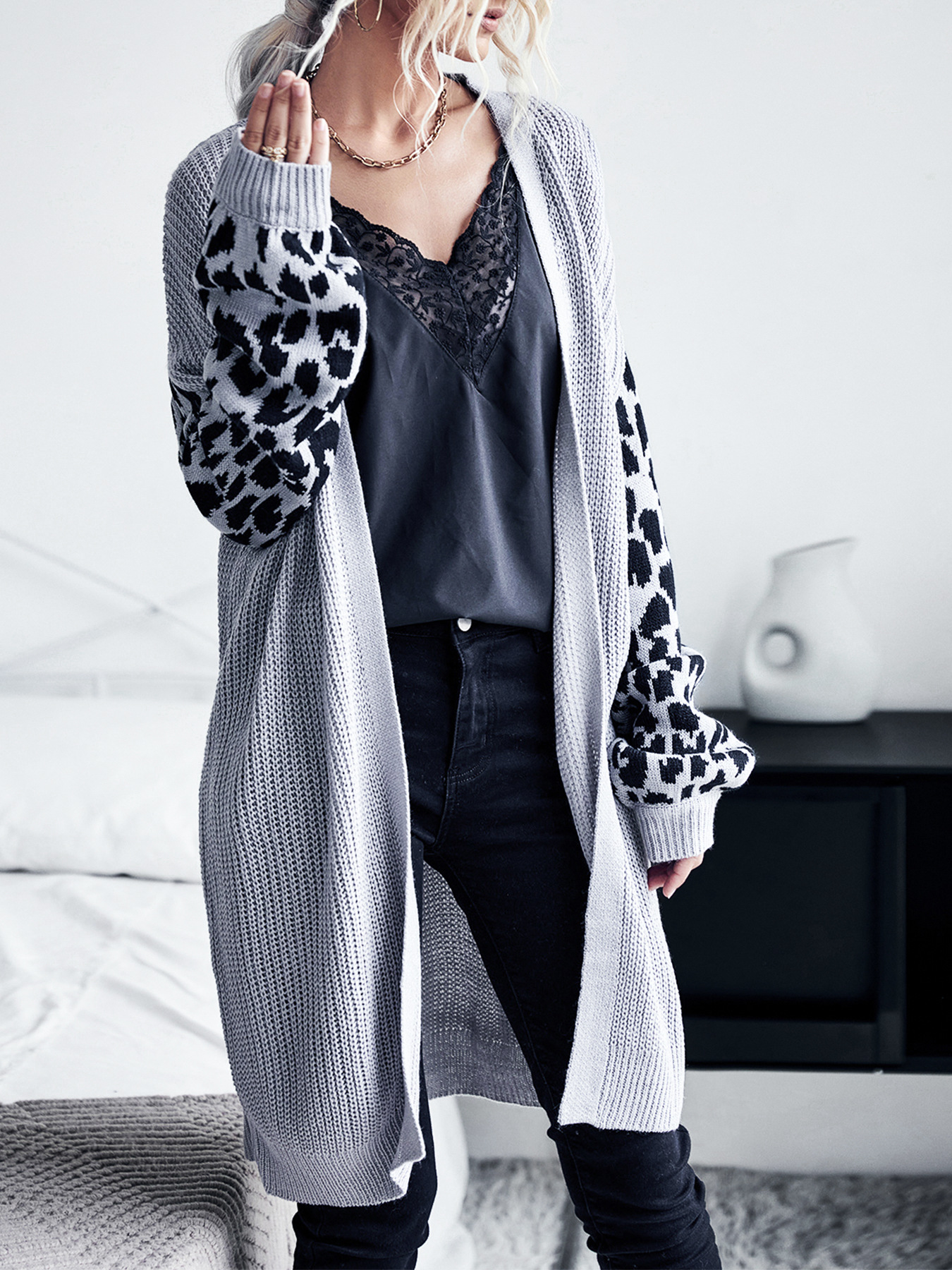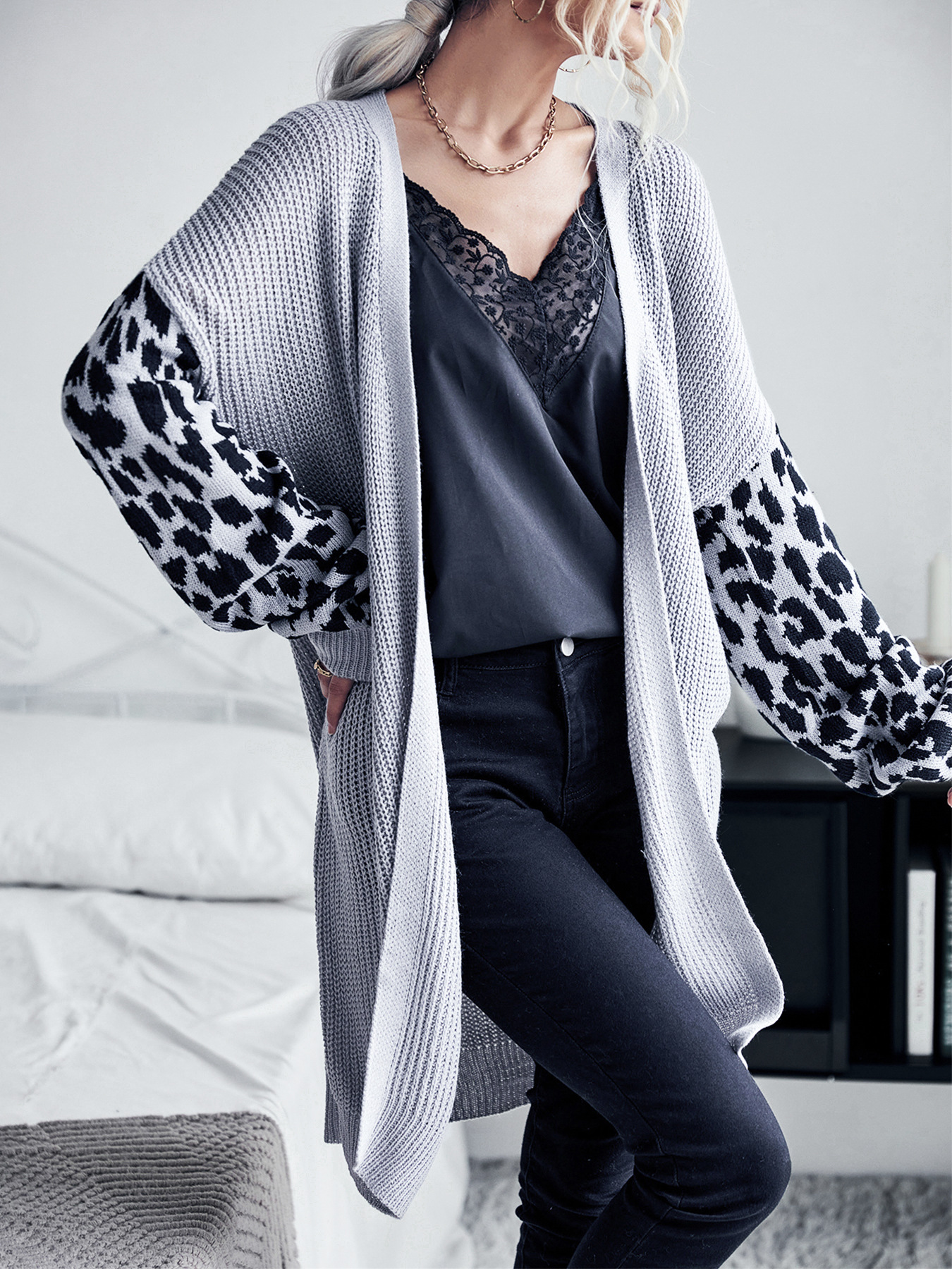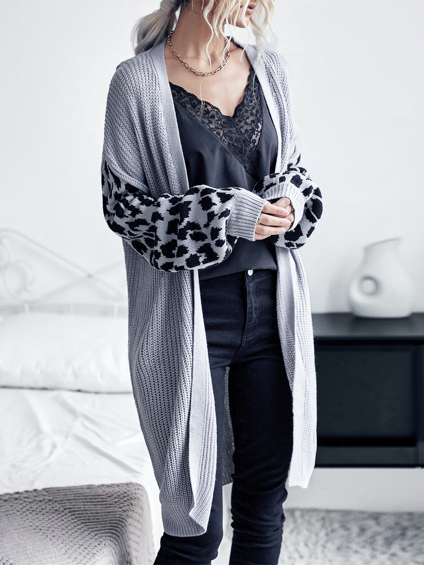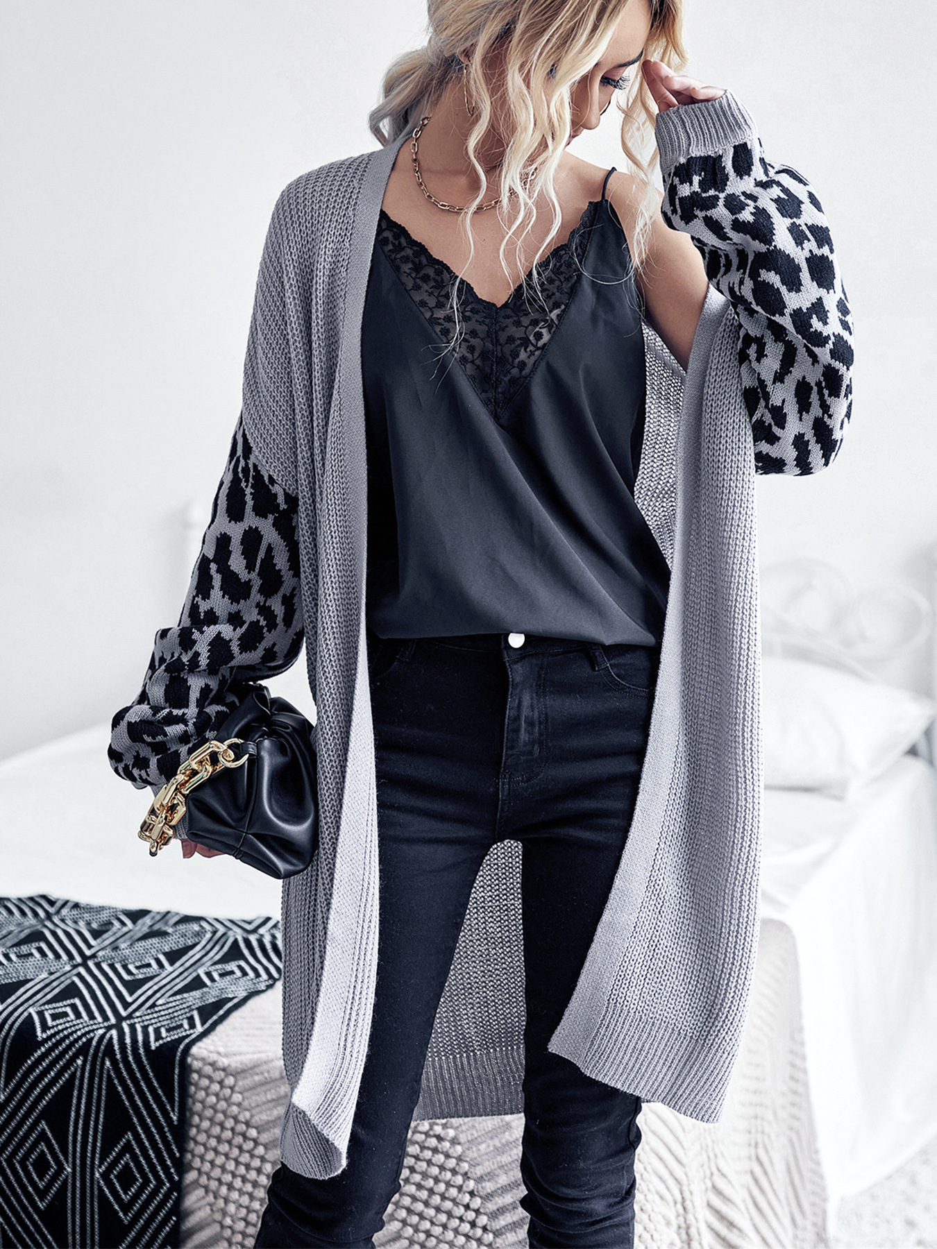 0 Review for Womens Long Leopard-print Long-sleeve Sweater Coat