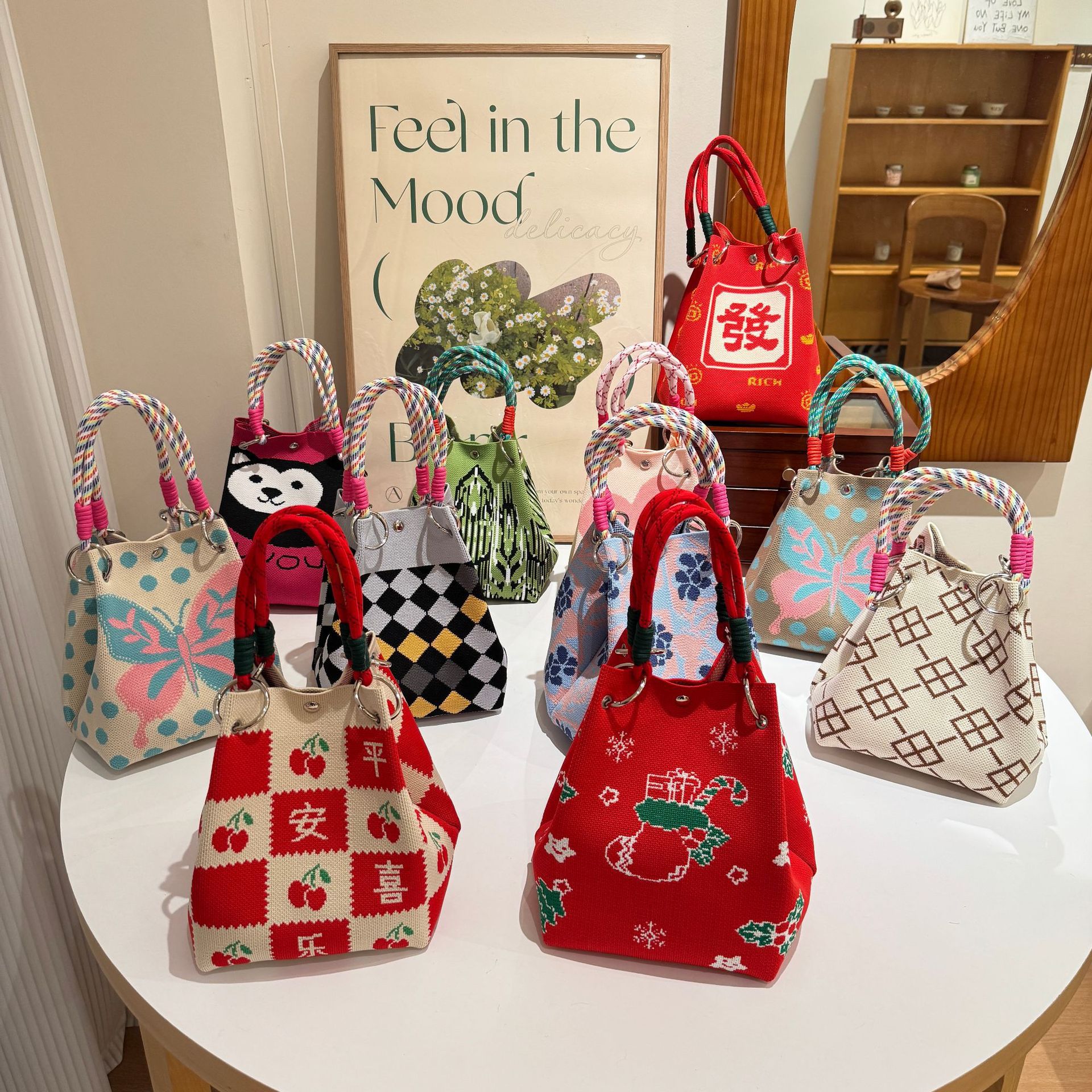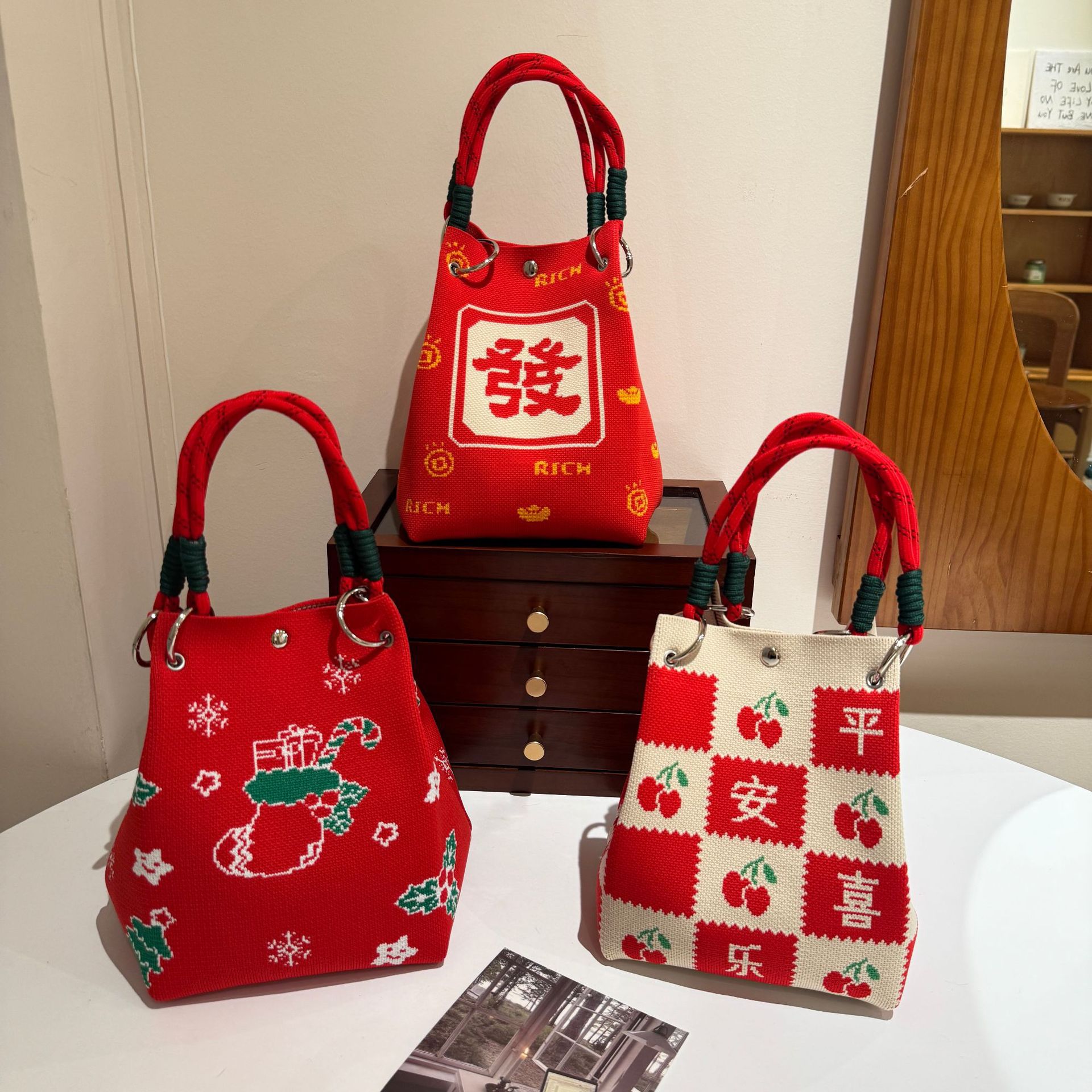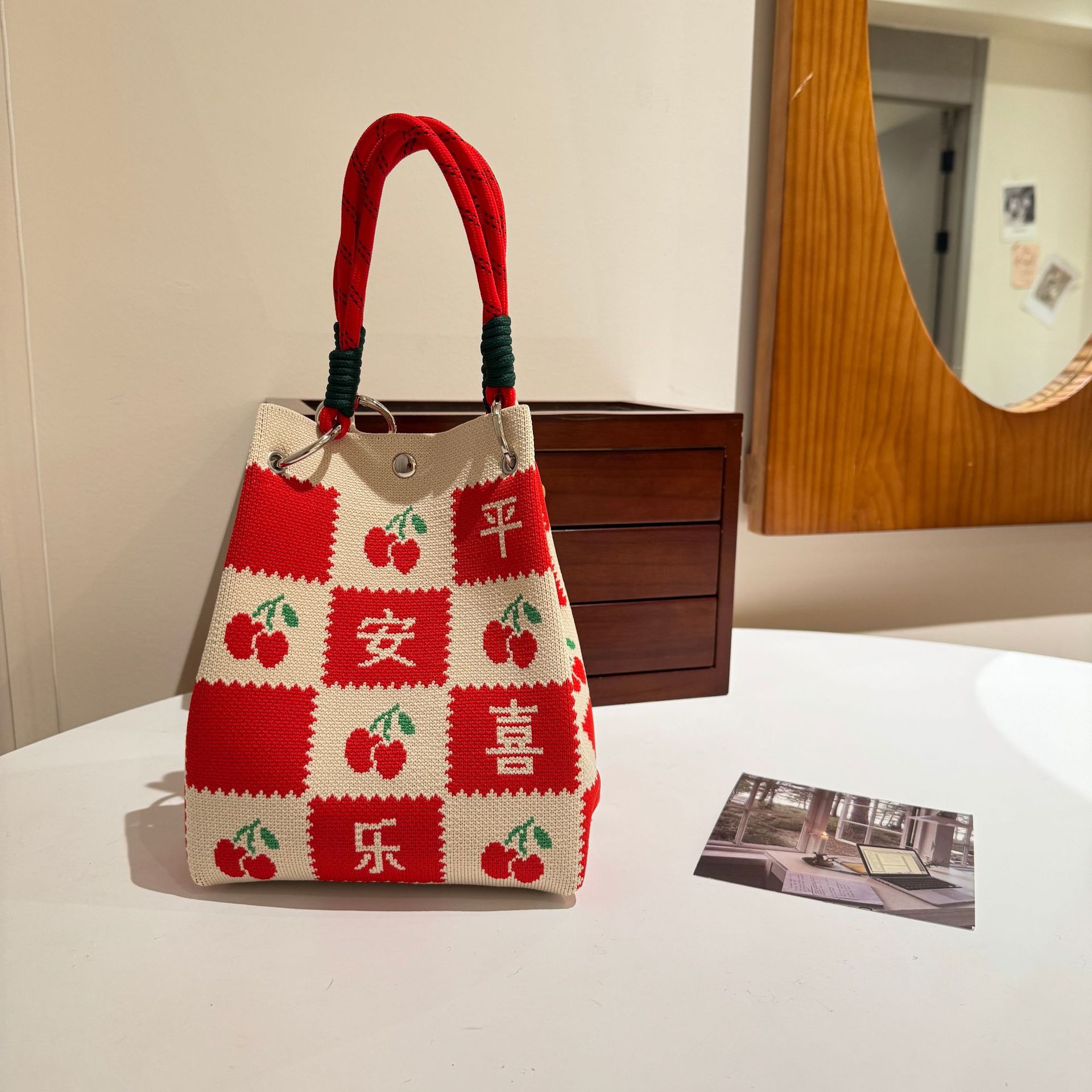 0 Review for Womens Red Knitted Tote Bag With Magnetic Closure And Large Capacity