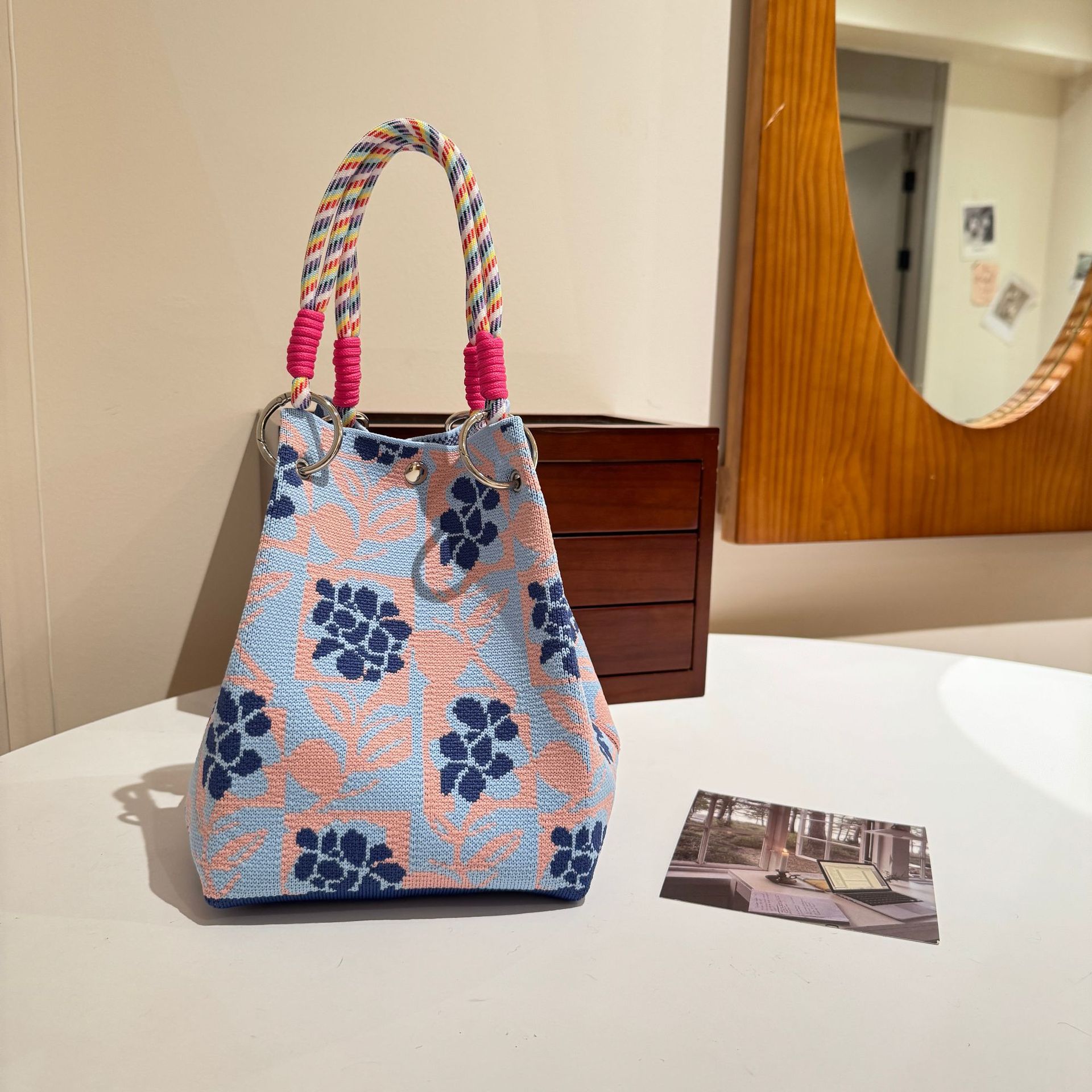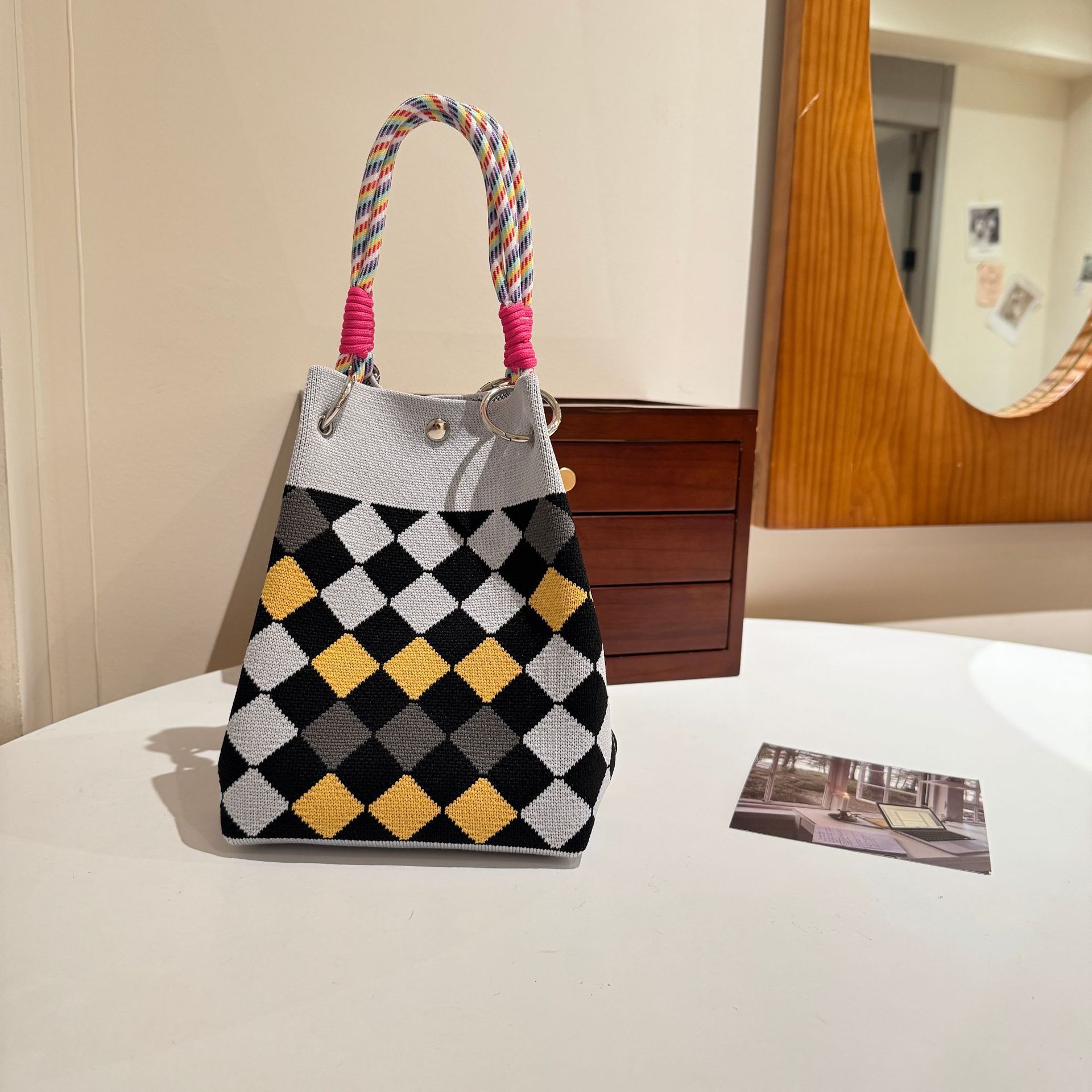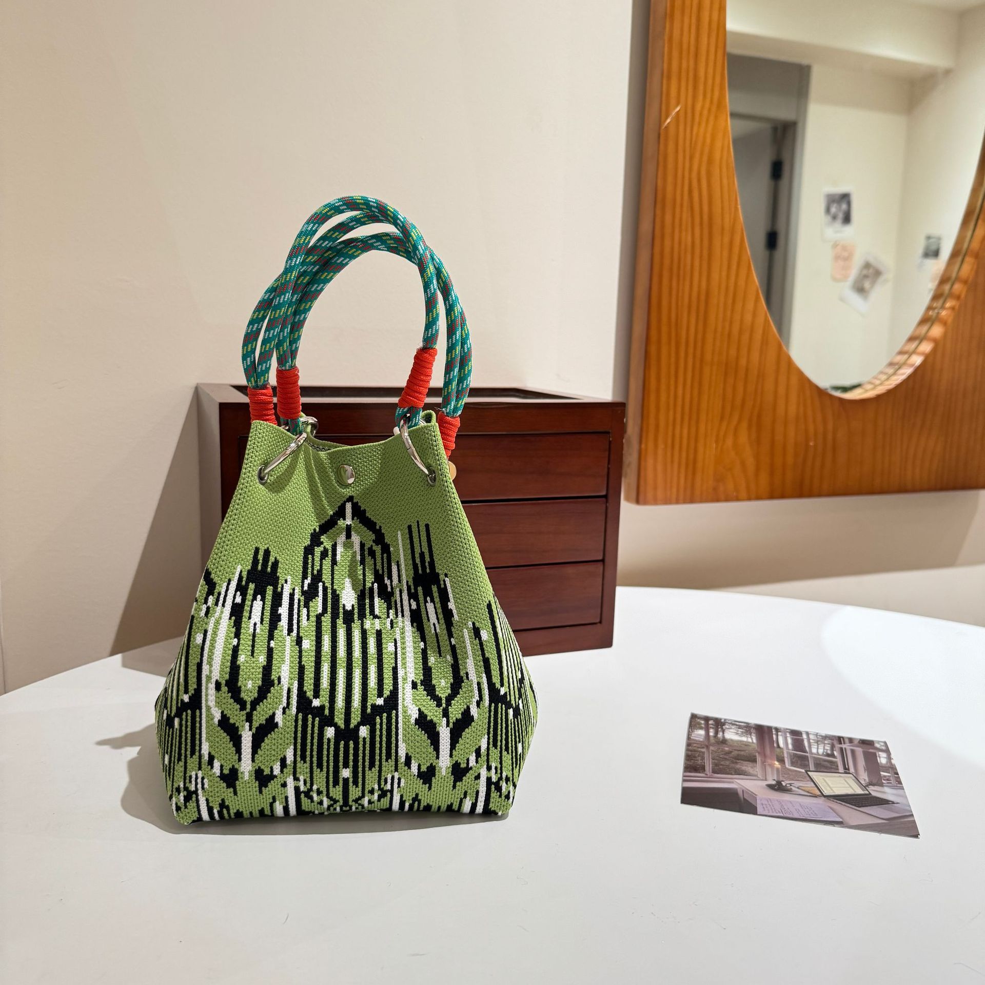 0 Review for Womens Red Knitted Tote Bag With Magnetic Closure And Large Capacity