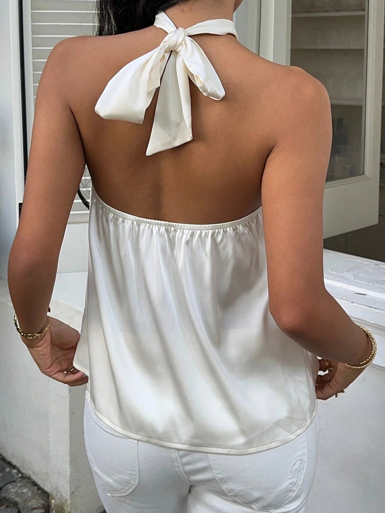0 Review for Womens Solid Color Backless And Off The Shoulder Camisole Sleeveless Top