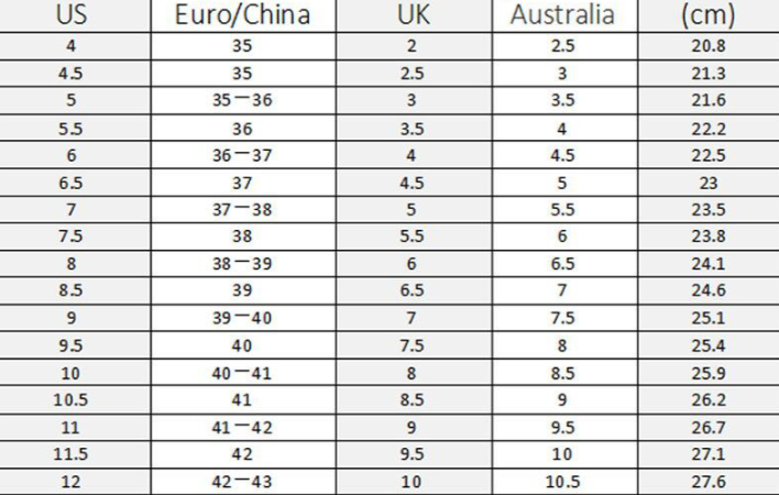 Sizes: 34, 35, 36, 37, 38, 39, 40, 41, 42, 43