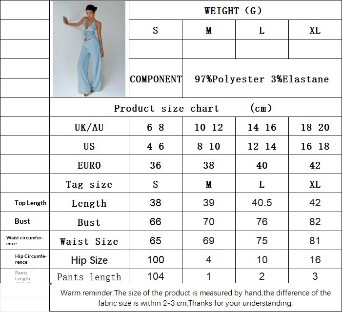 Womens Solid Light Blue Halterneck Top And High-Waist Wide-Leg Pants Set