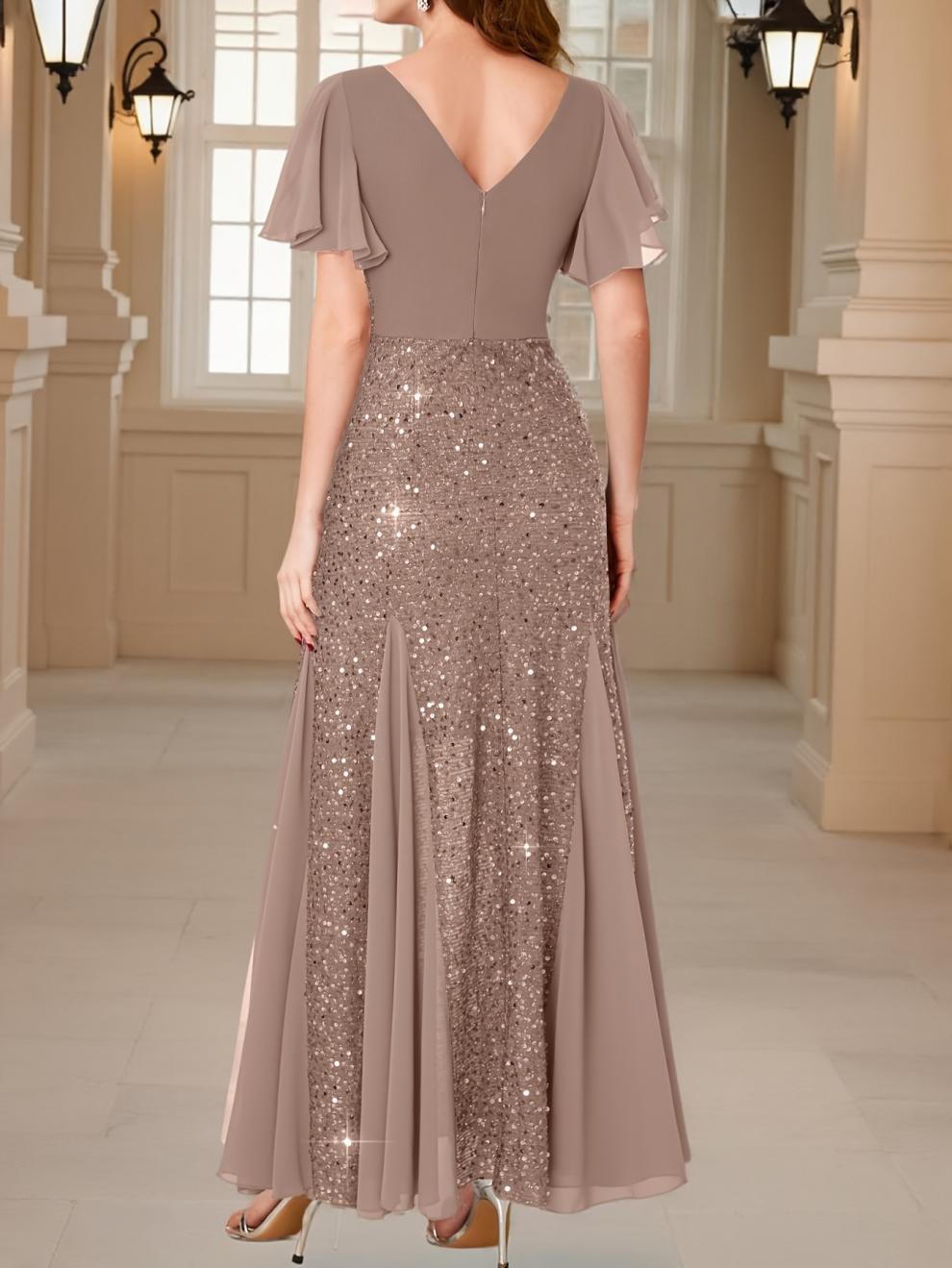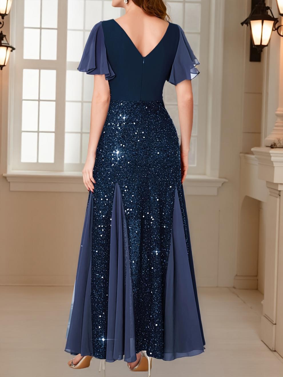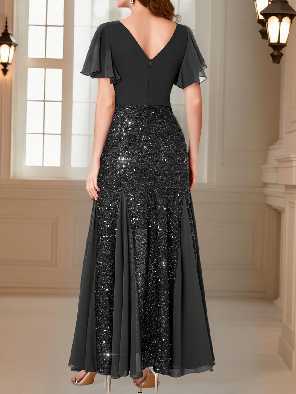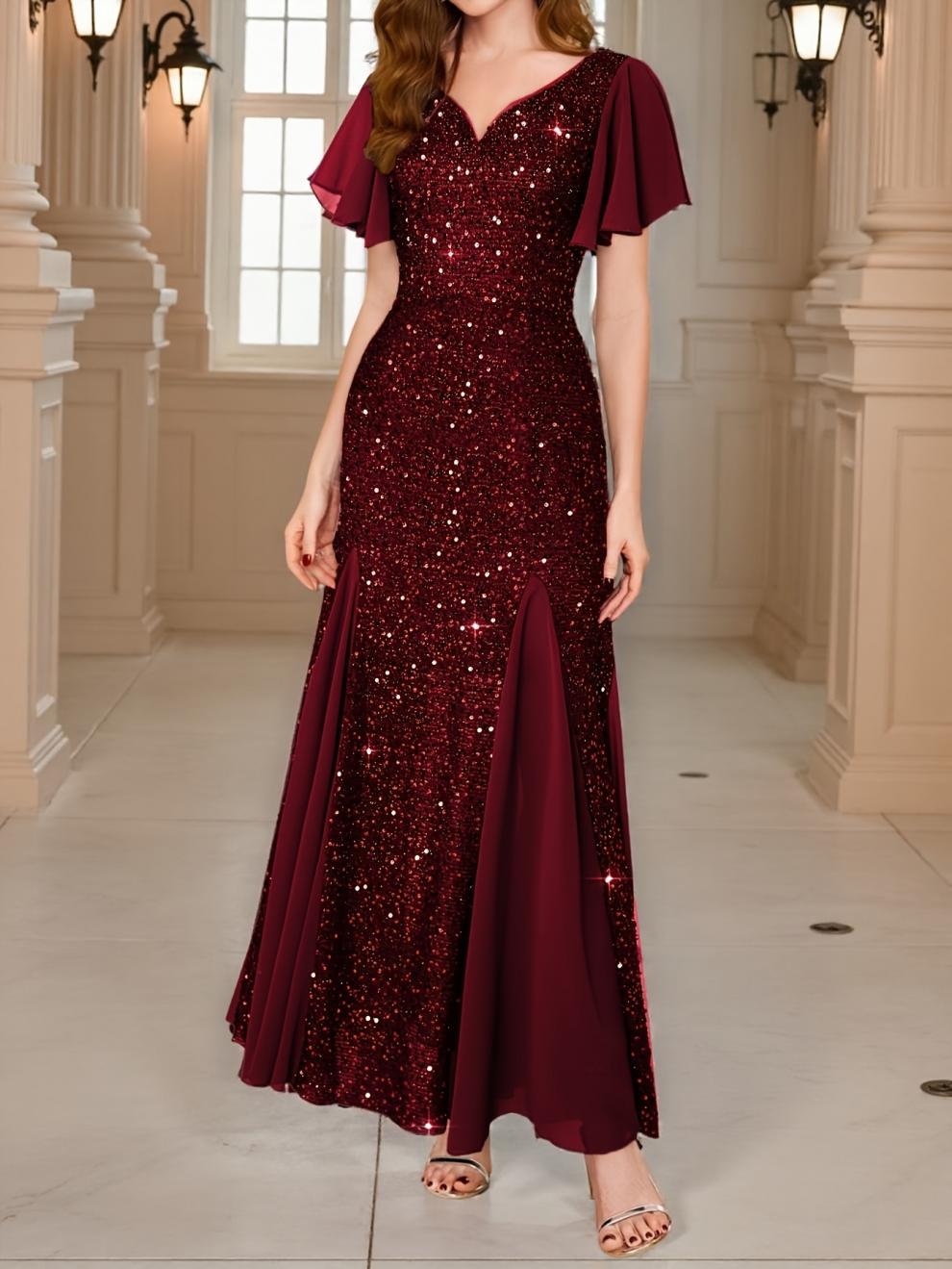 0 Review for Womens Sparkly Sequin Heart-Neckline Puff-Sleeve Dress