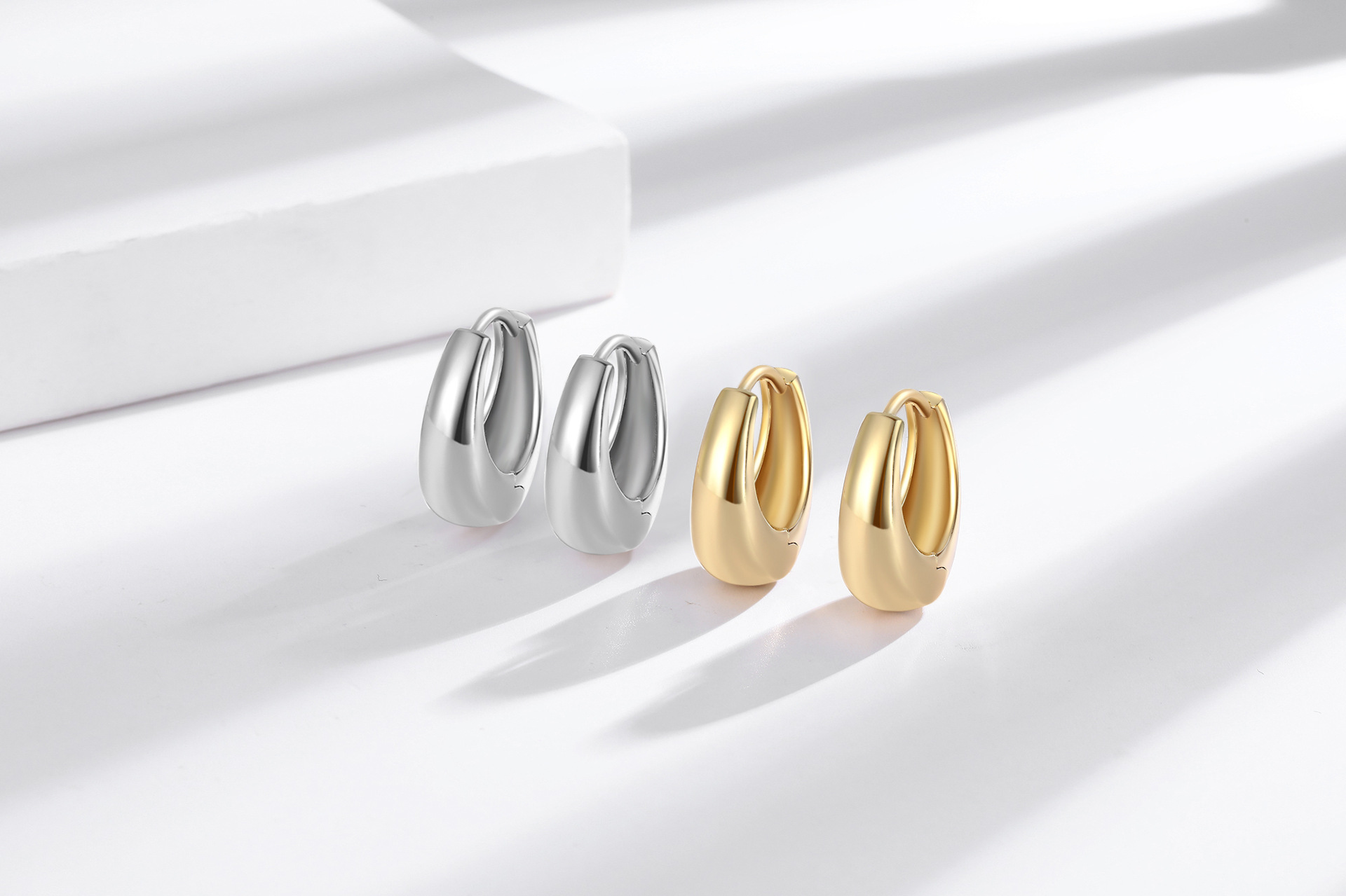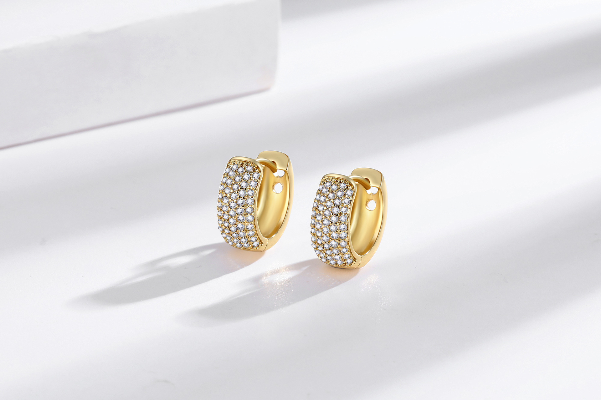 Color: Full-Diamond Earrings—White Gold, Full-Diamond Earrings—Yellow Gold, U-Shaped Earrings—White Gold, U-Shaped—Yellow Gold