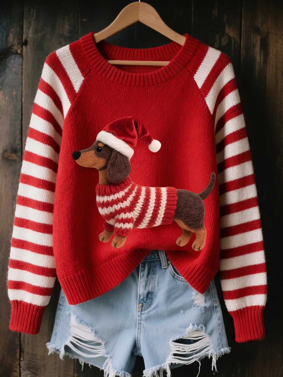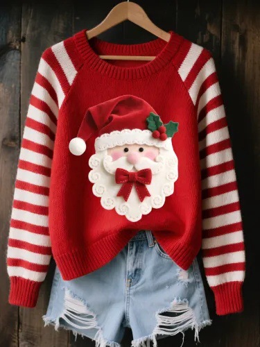 0 Review for 3D Digital-Print Womens Crew-Neck Loose Retro Jacquard Pullover Sweater