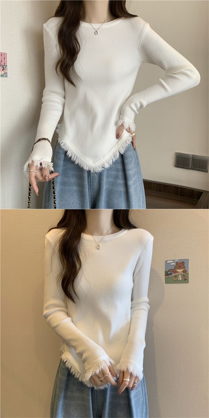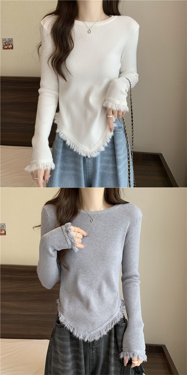 0 Review for AutumnWinter Designer Crew-Neck Tassel Asymmetrical Long-Sleeve Top