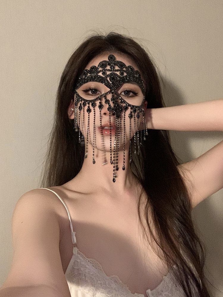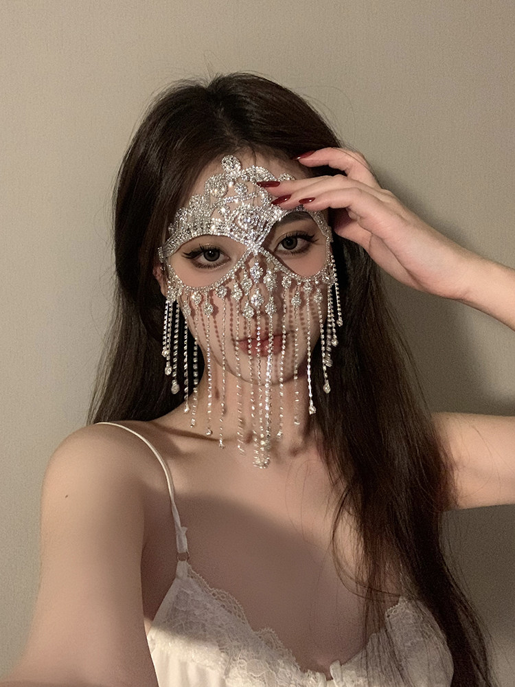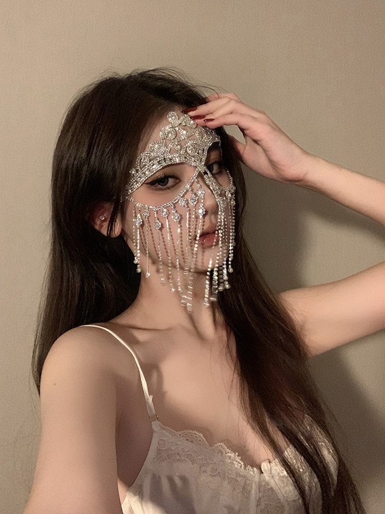 0 Review for Ball Mask Zircon Tassel Hairband Vintage Style Face Window