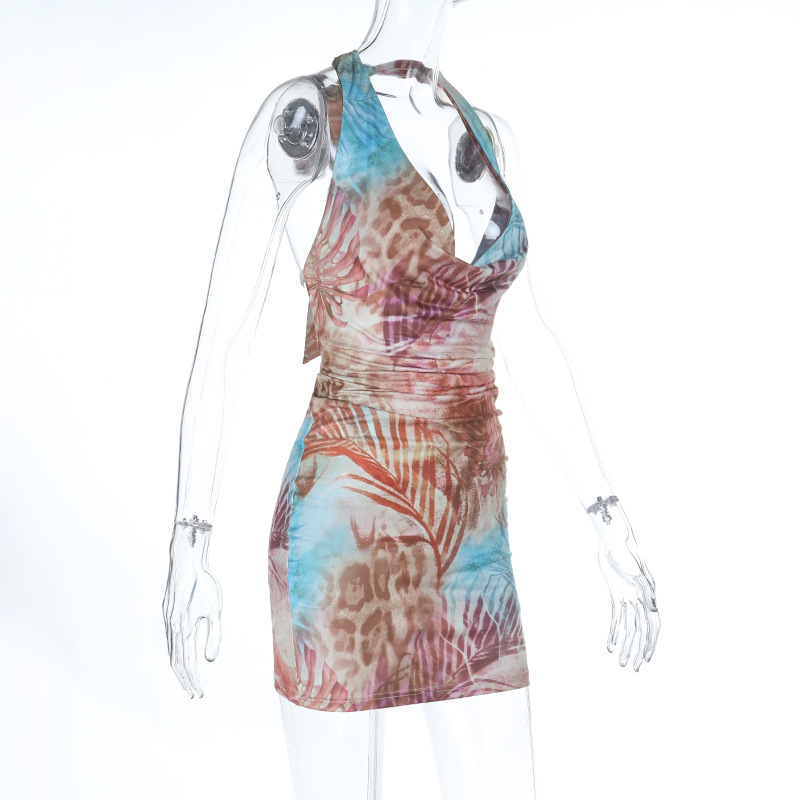 Beach Vacation Chest Pocket Scoop Neck Printed Dress