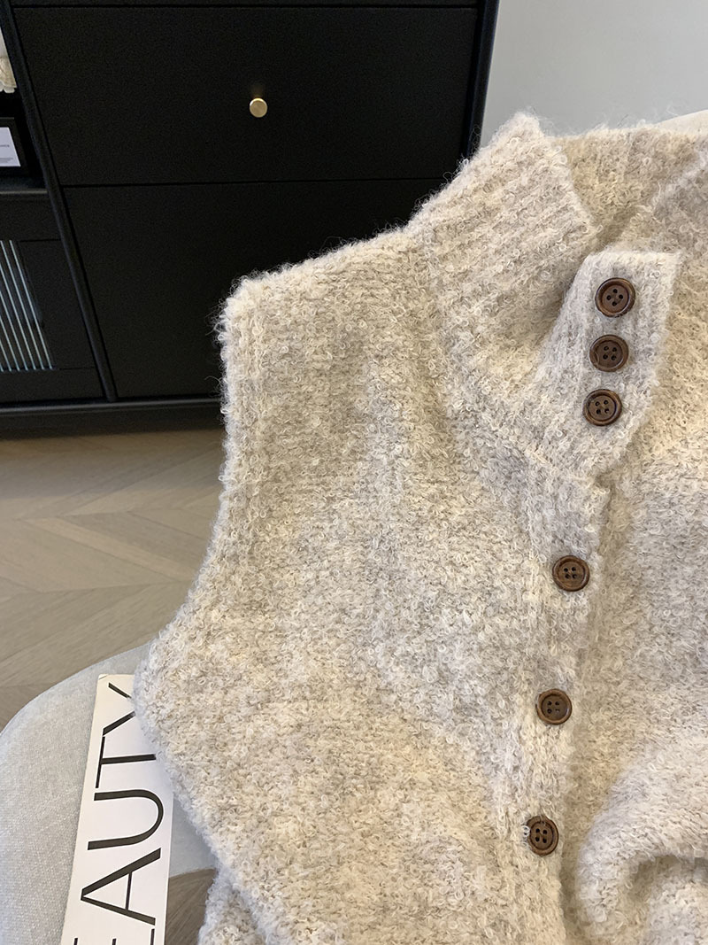 0 Review for Beige Soft And Cozy Knitted Vest Cardigan For Women