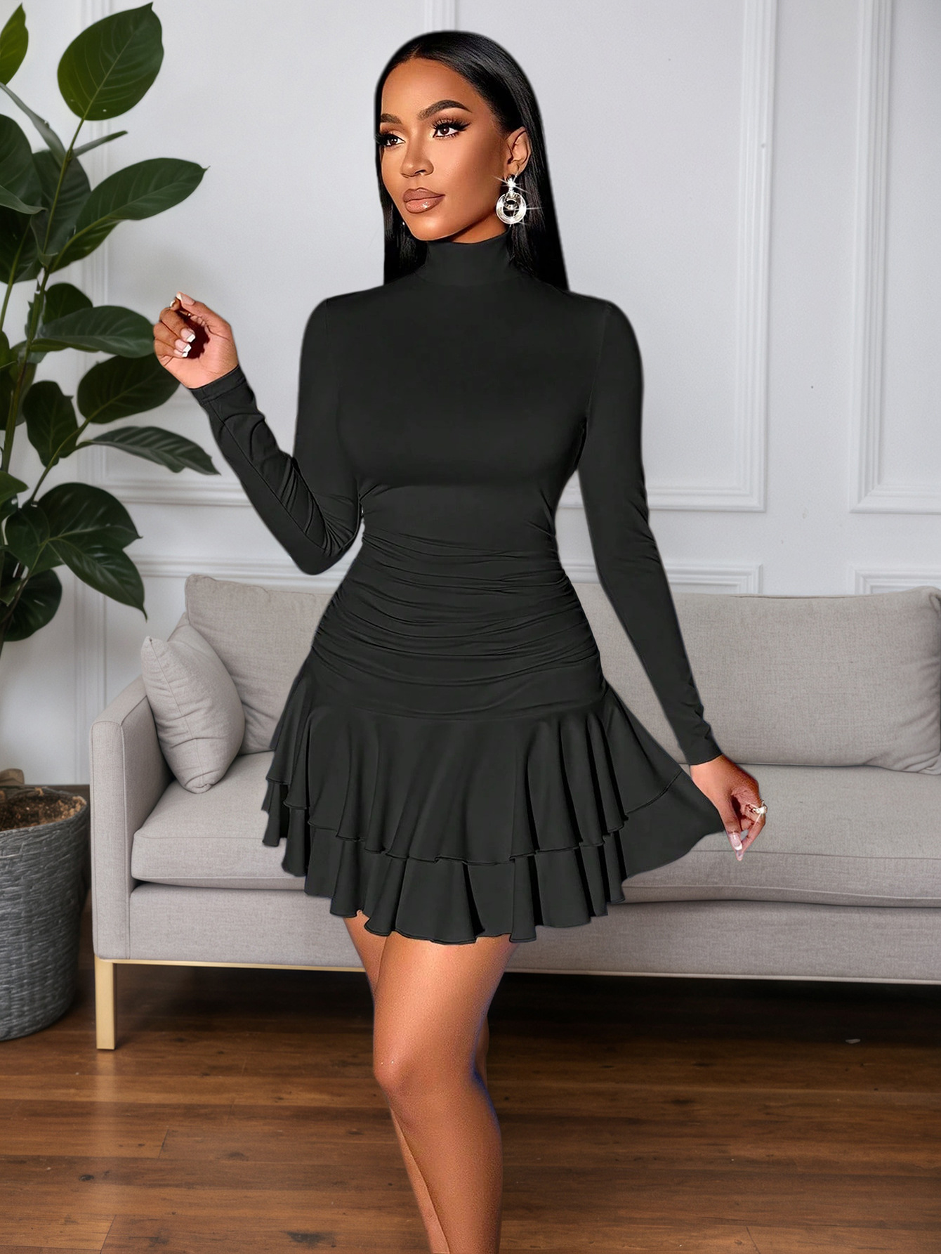 0 Review for Black Mid-waist Pleated Double-layer Ruffle Mini Skirt