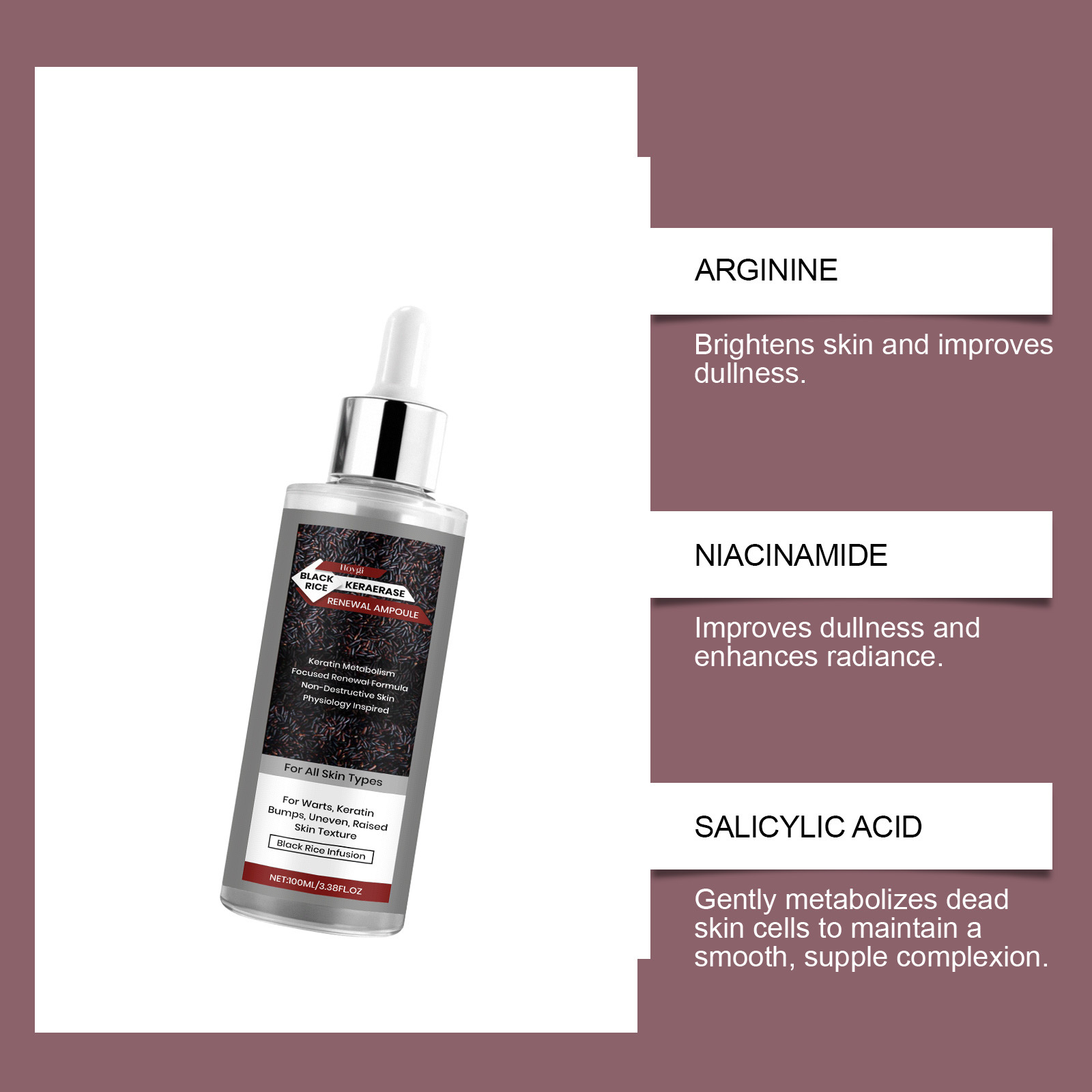 Ingredients: water, glycerin, nicotinamide, 1,2- hexanediol, carbomer, arginine, salicylic acid, hydrolyzed rice extract, hydrolyzed rice bran extract, keratin.