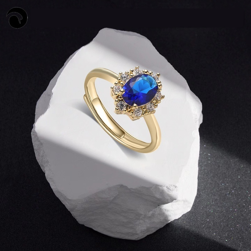 Blue Fully Paved Zircon Adjustable Ring For Women