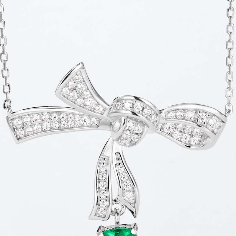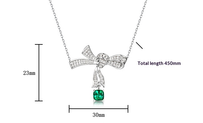 Bow-Knot Cultured Emerald Necklace In S925 Sterling Silver Pillow-Shaped