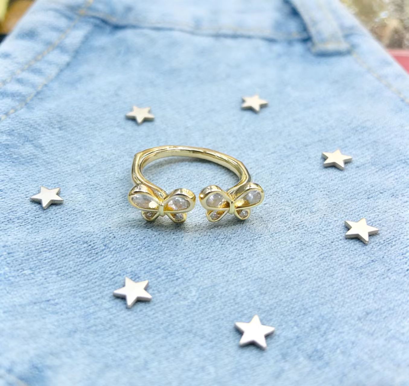 Bow-Knot Womens Micro-Pave Diamond Commuter Ring