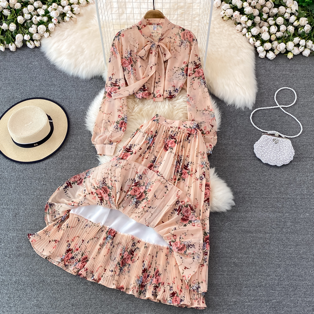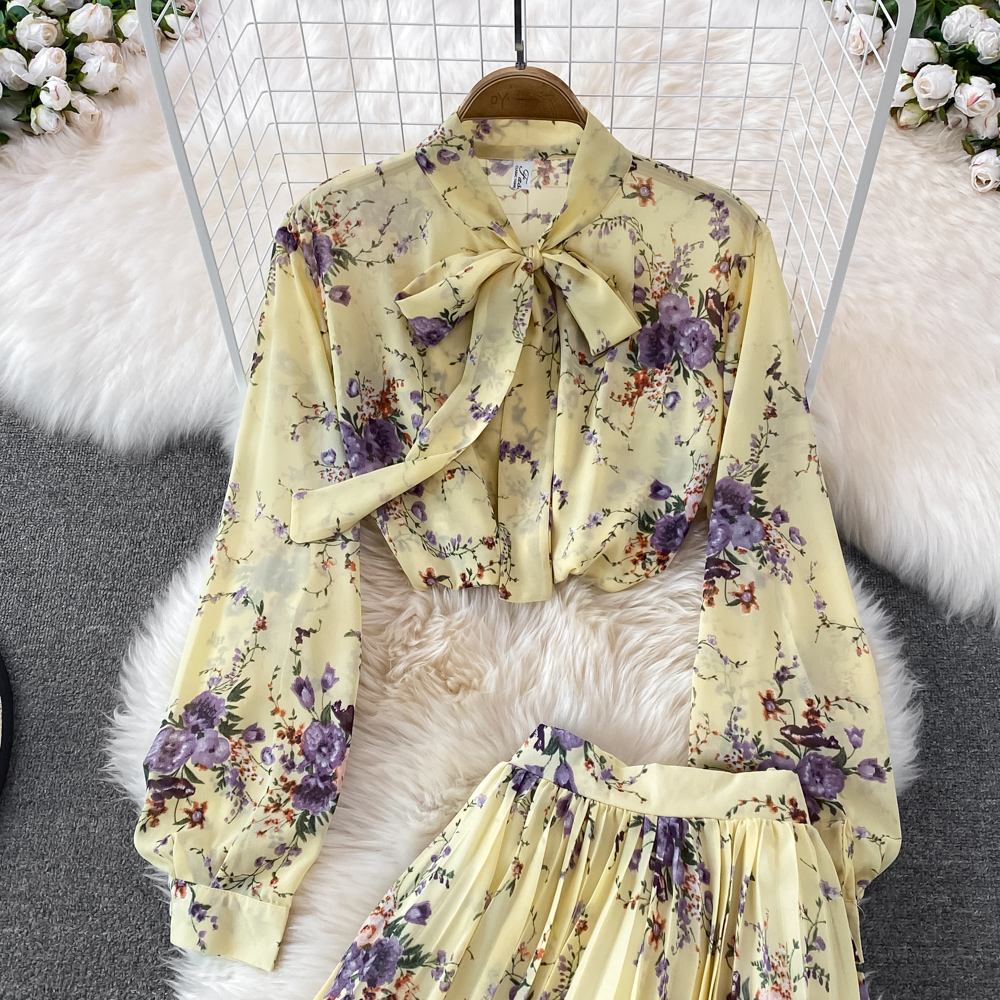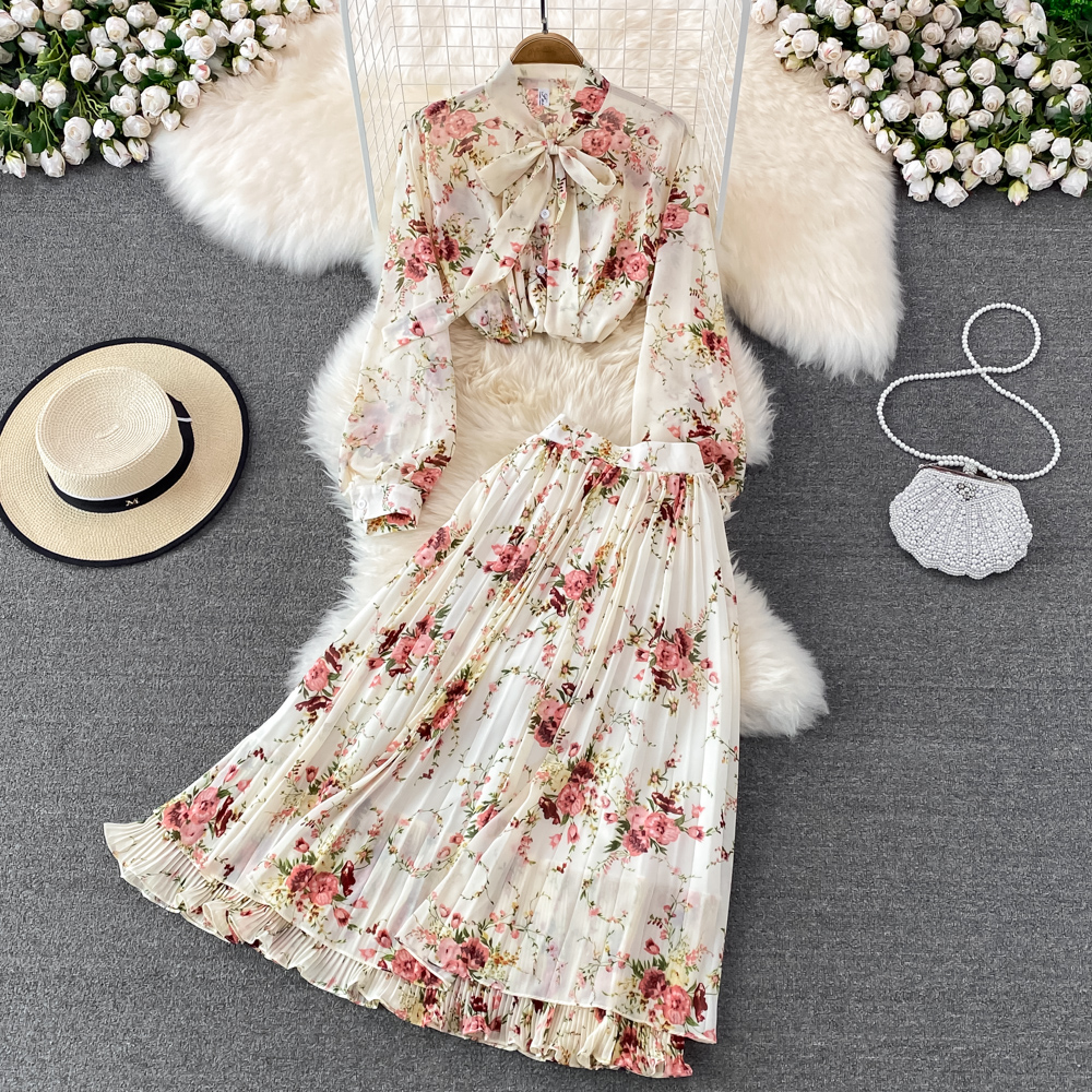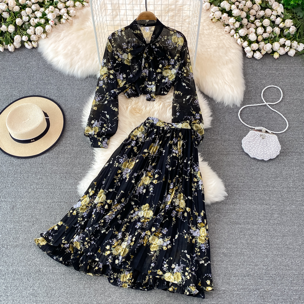 0 Review for Bow-tie Lace Floral Chiffon High-Waist Pleated Skirt