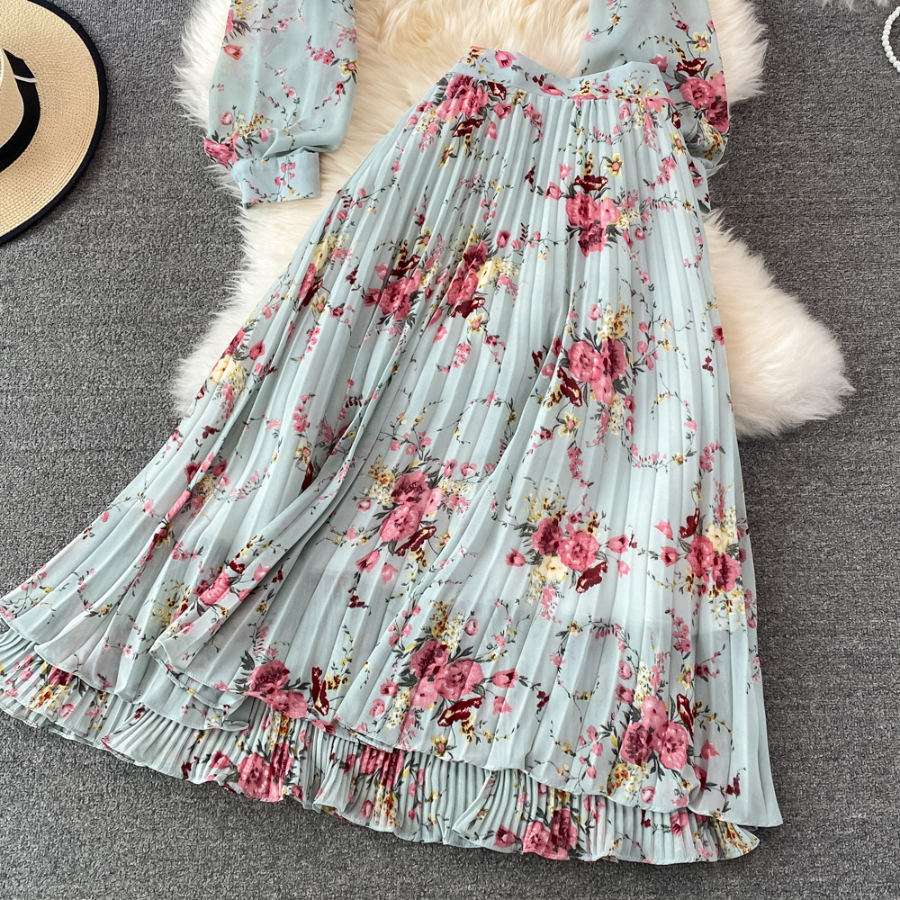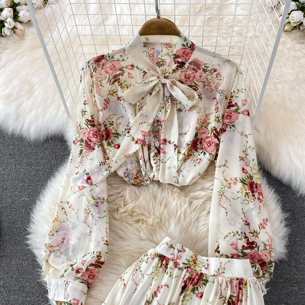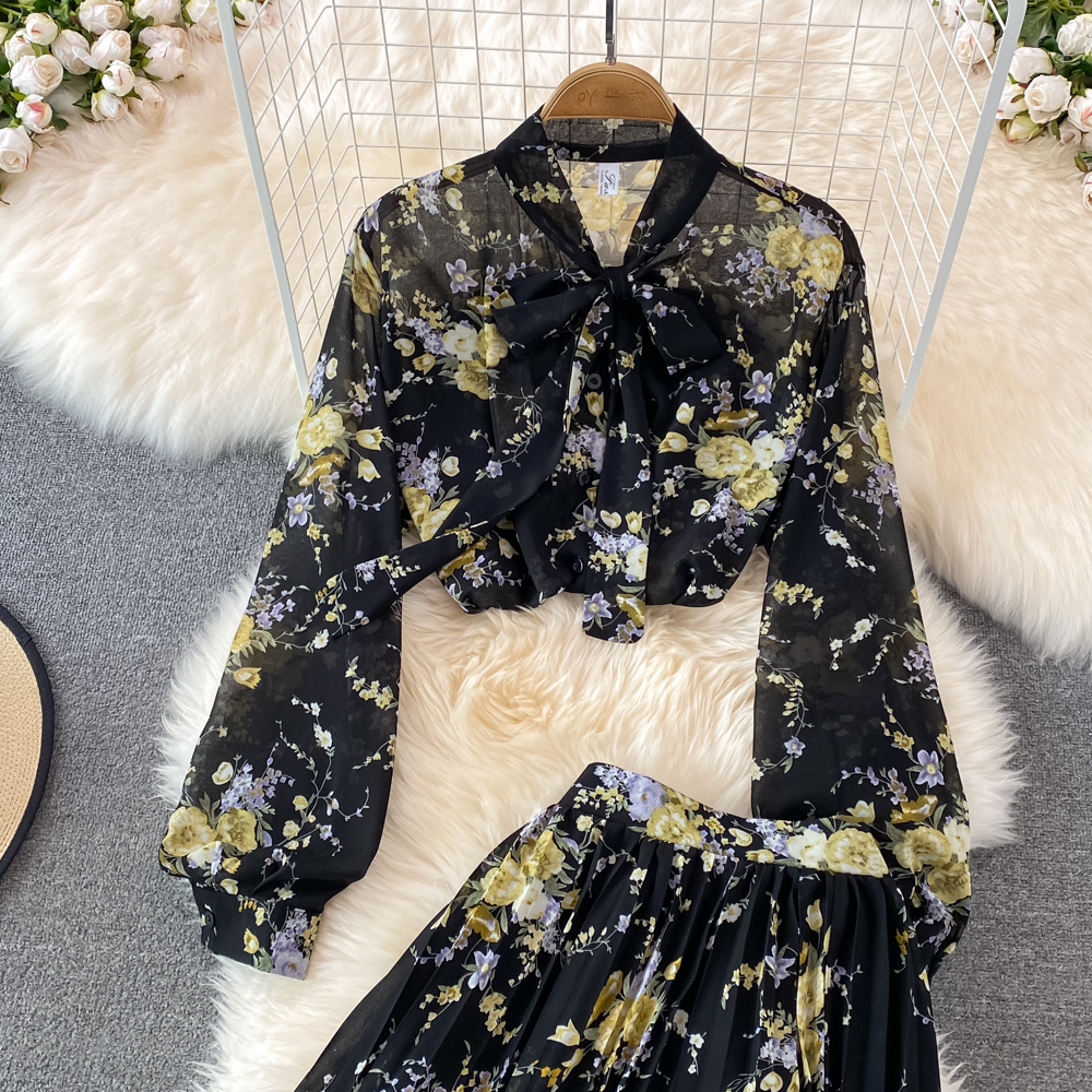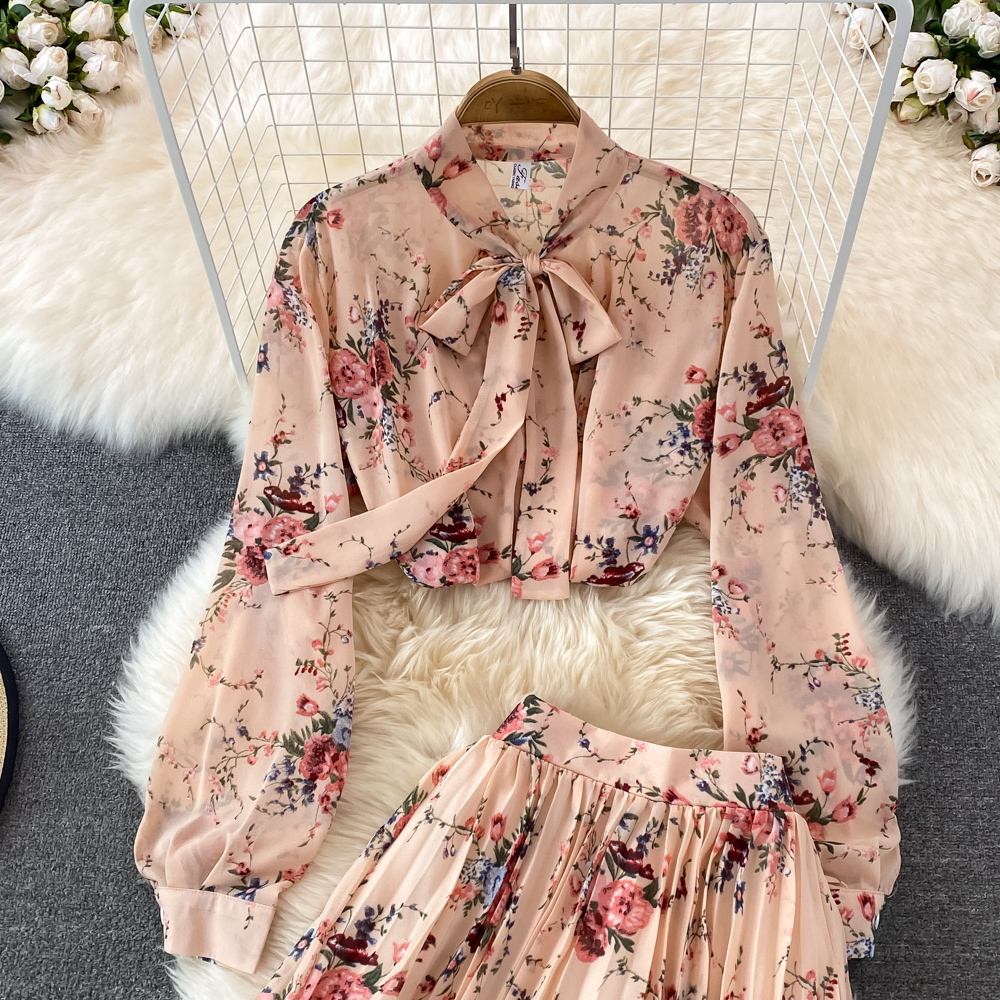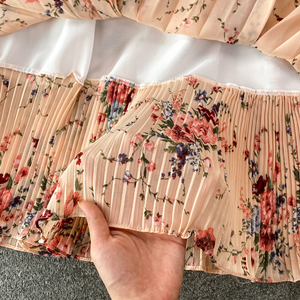 0 Review for Bow-tie Lace Floral Chiffon High-Waist Pleated Skirt