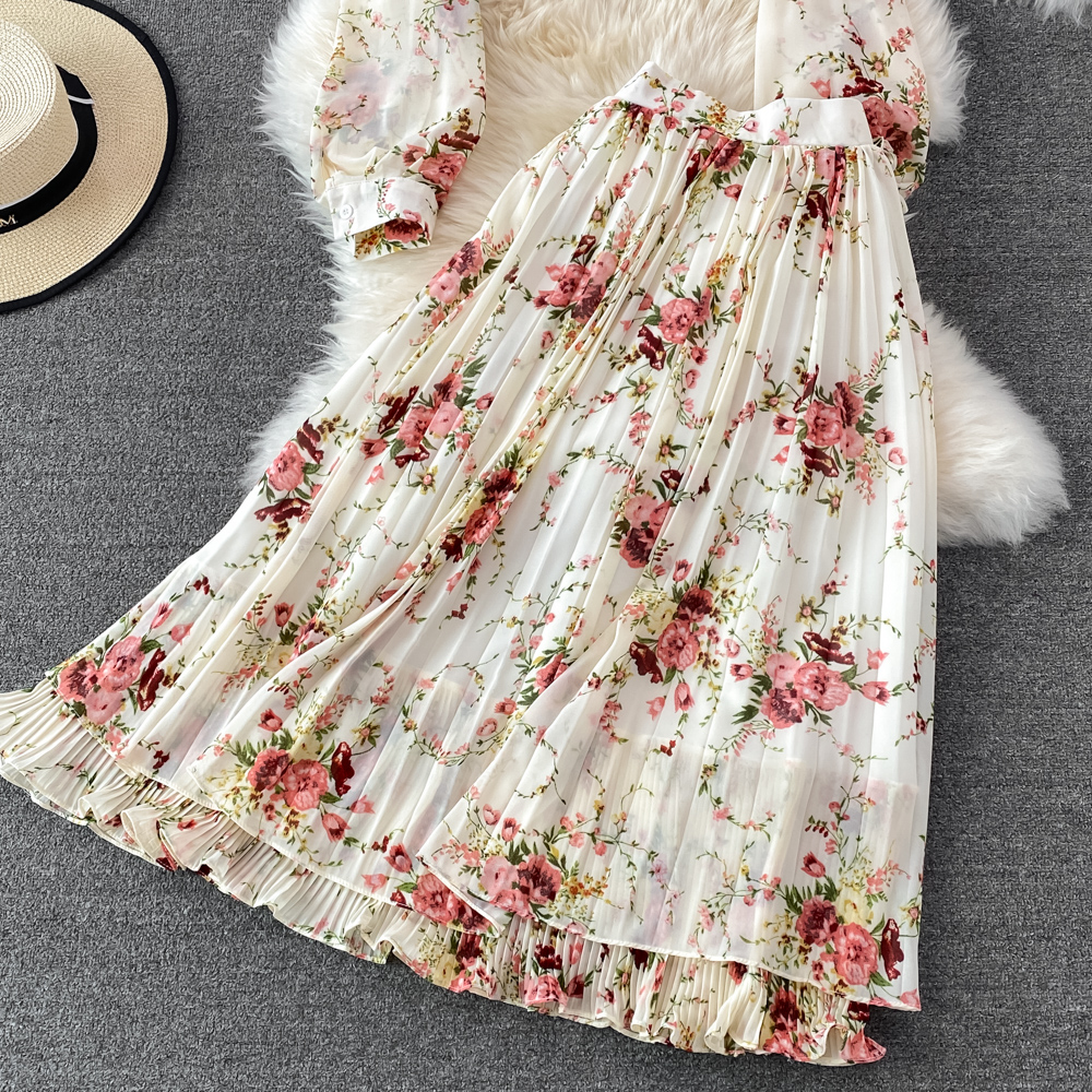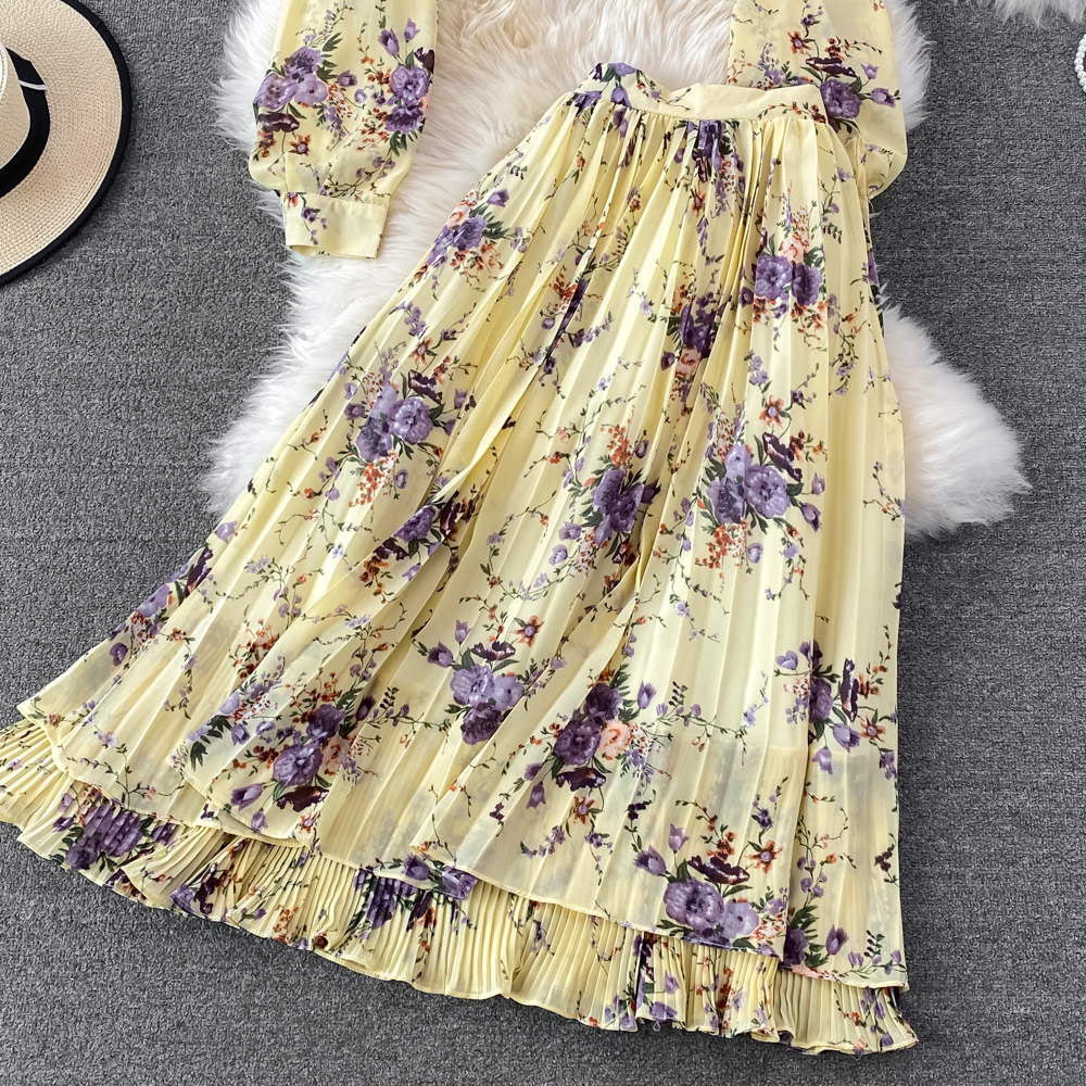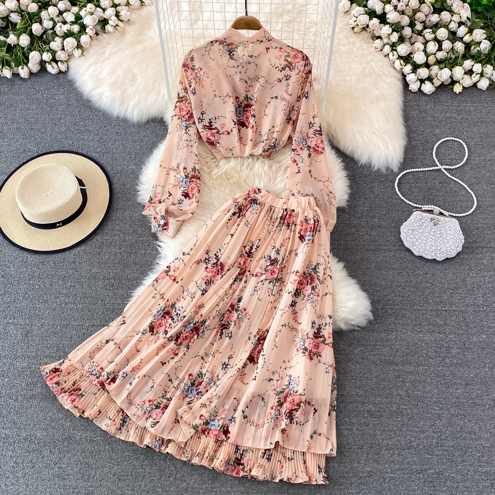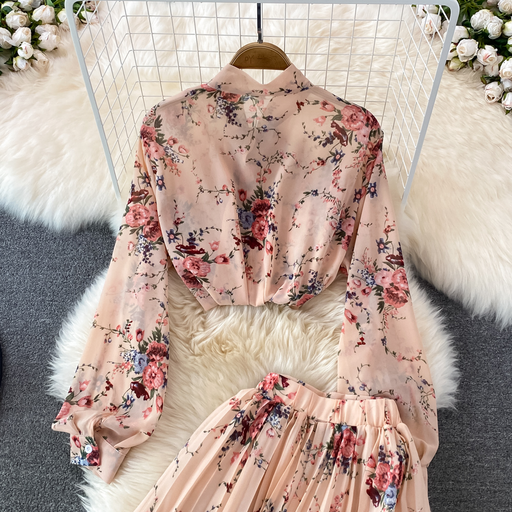 0 Review for Bow-tie Lace Floral Chiffon High-Waist Pleated Skirt
