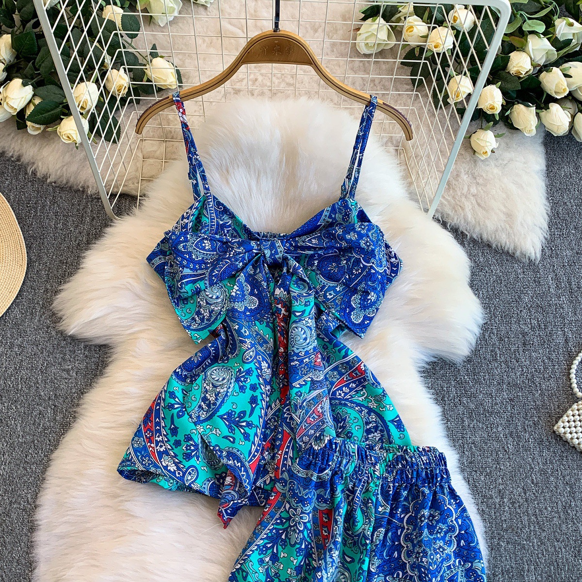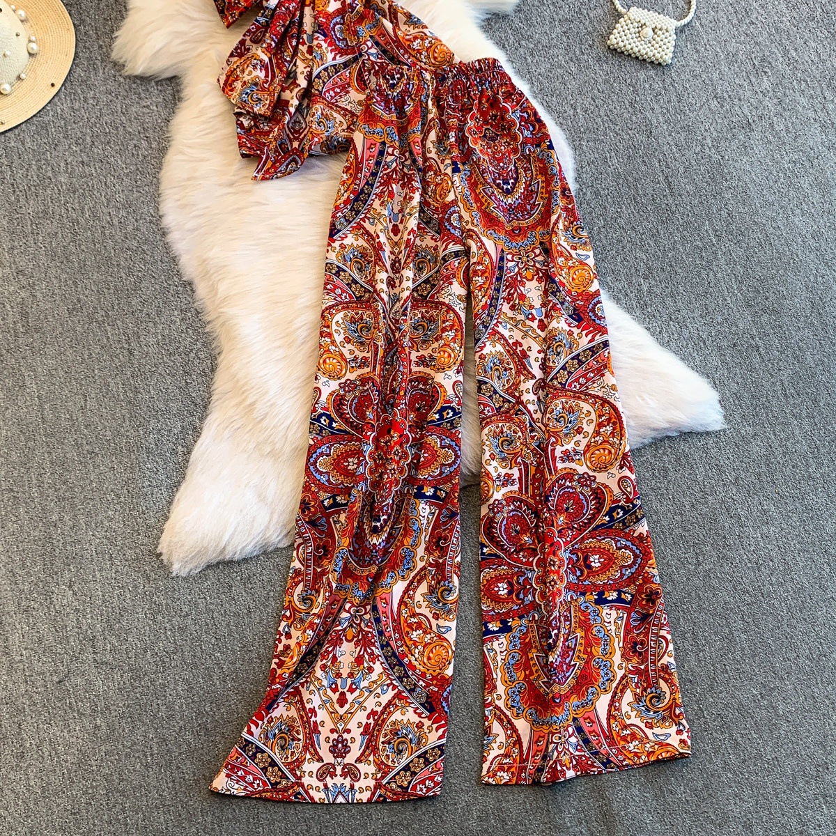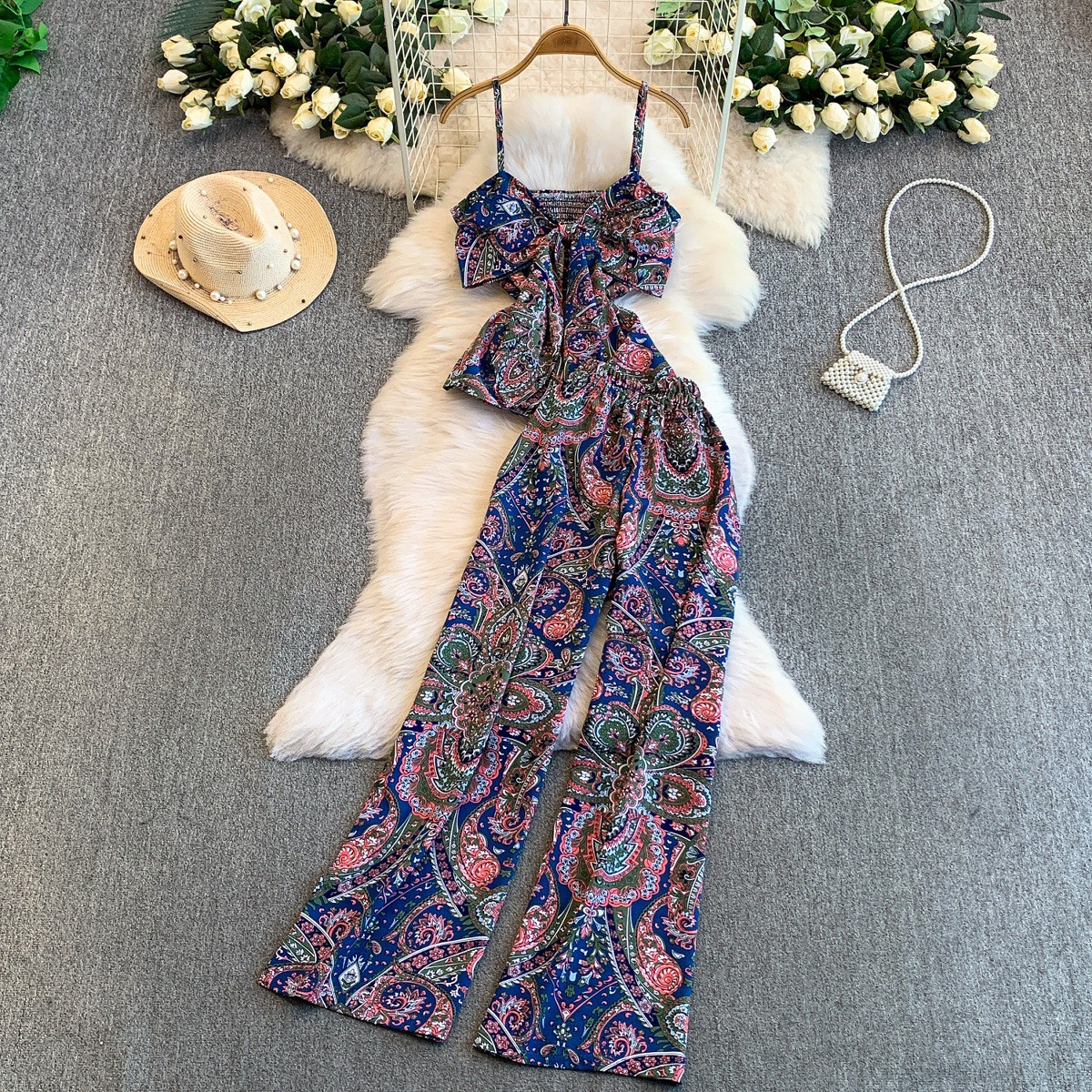 Bow-tie V-neck Vest With High-waisted Figure-flattering Wide-leg Pants