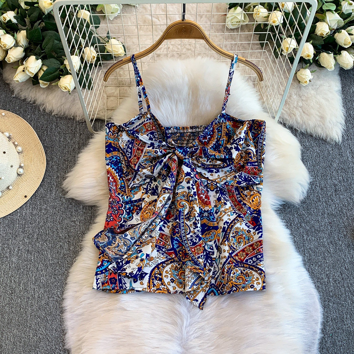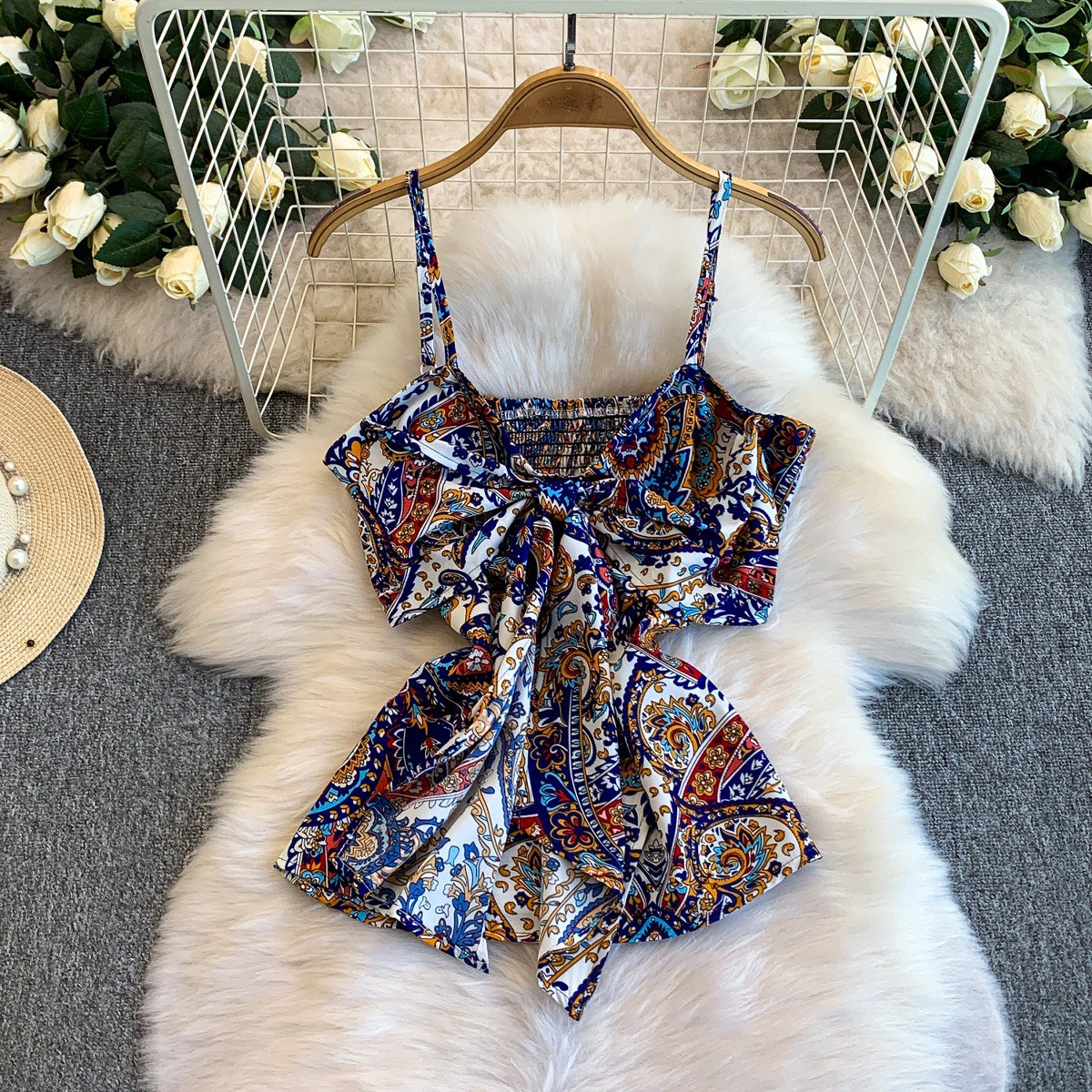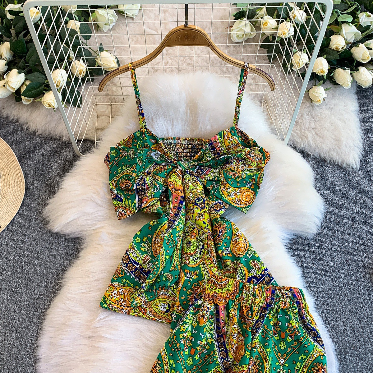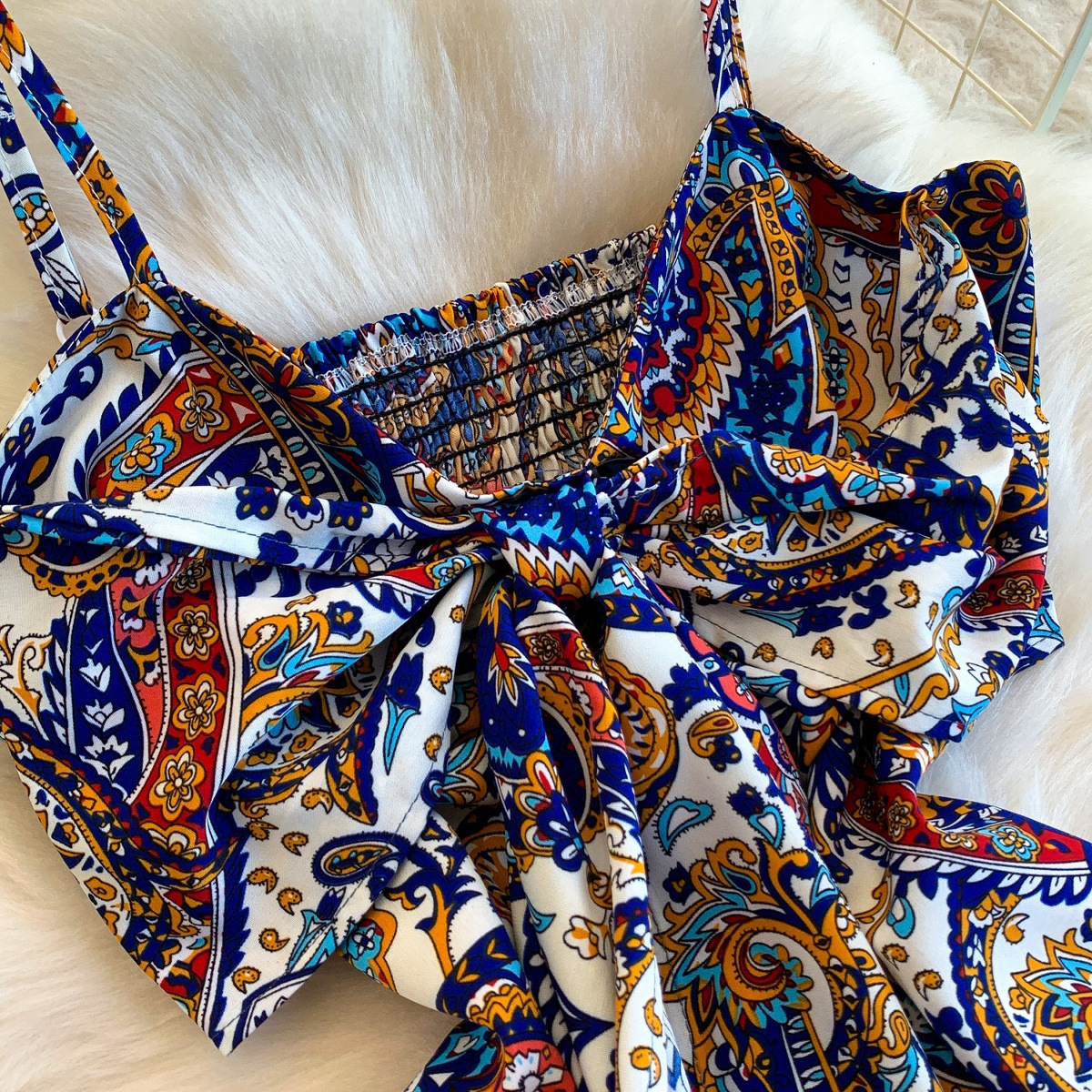 Bow-tie V-neck Vest With High-waisted Figure-flattering Wide-leg Pants