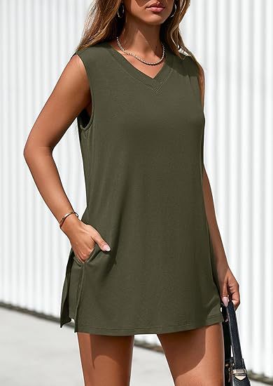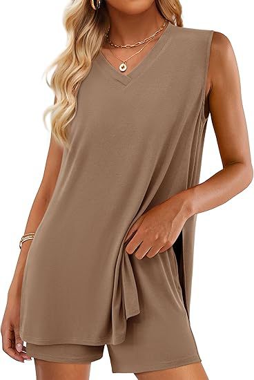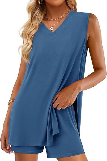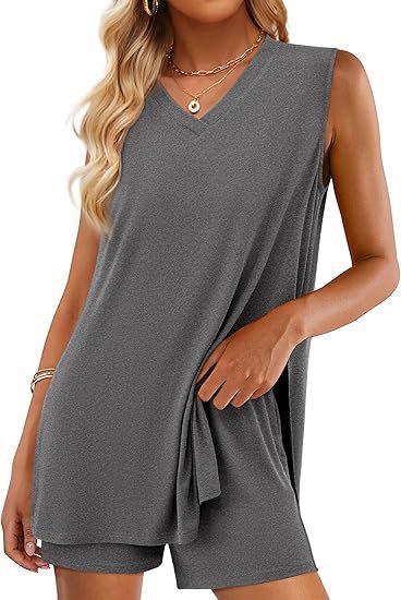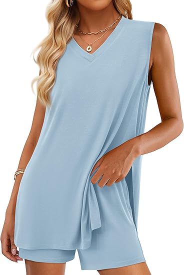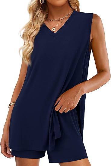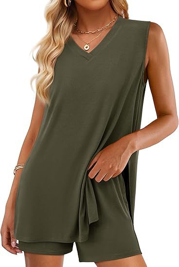 0 Review for Casual Fashion V-neck Sleeveless Top And Shorts Set With Pockets