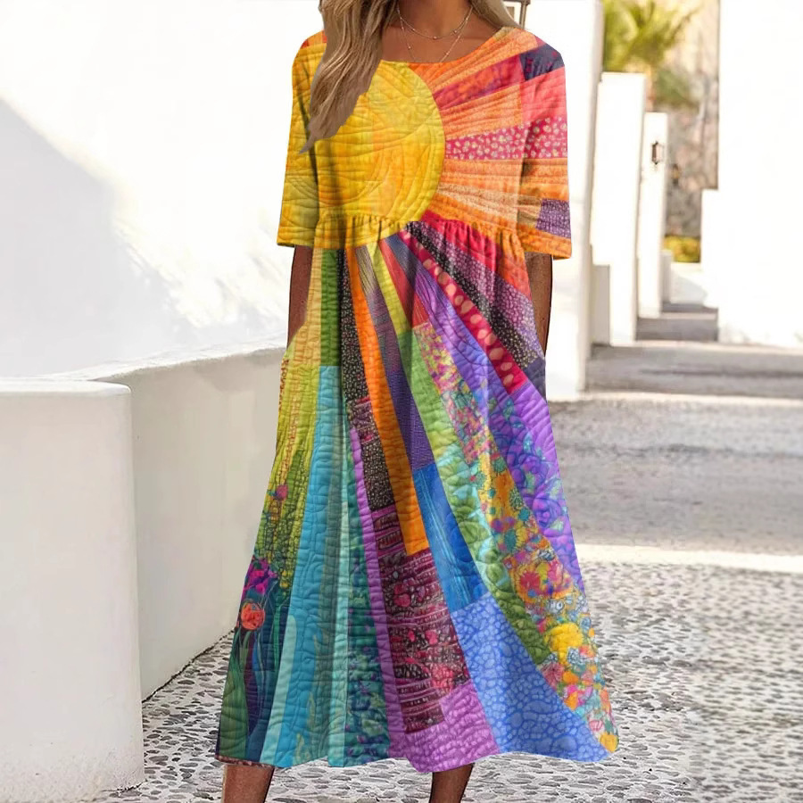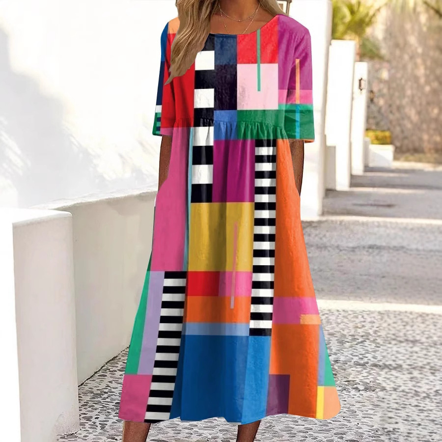 0 Review for Casual Retro Ocean Art Print Womens Loose Dress