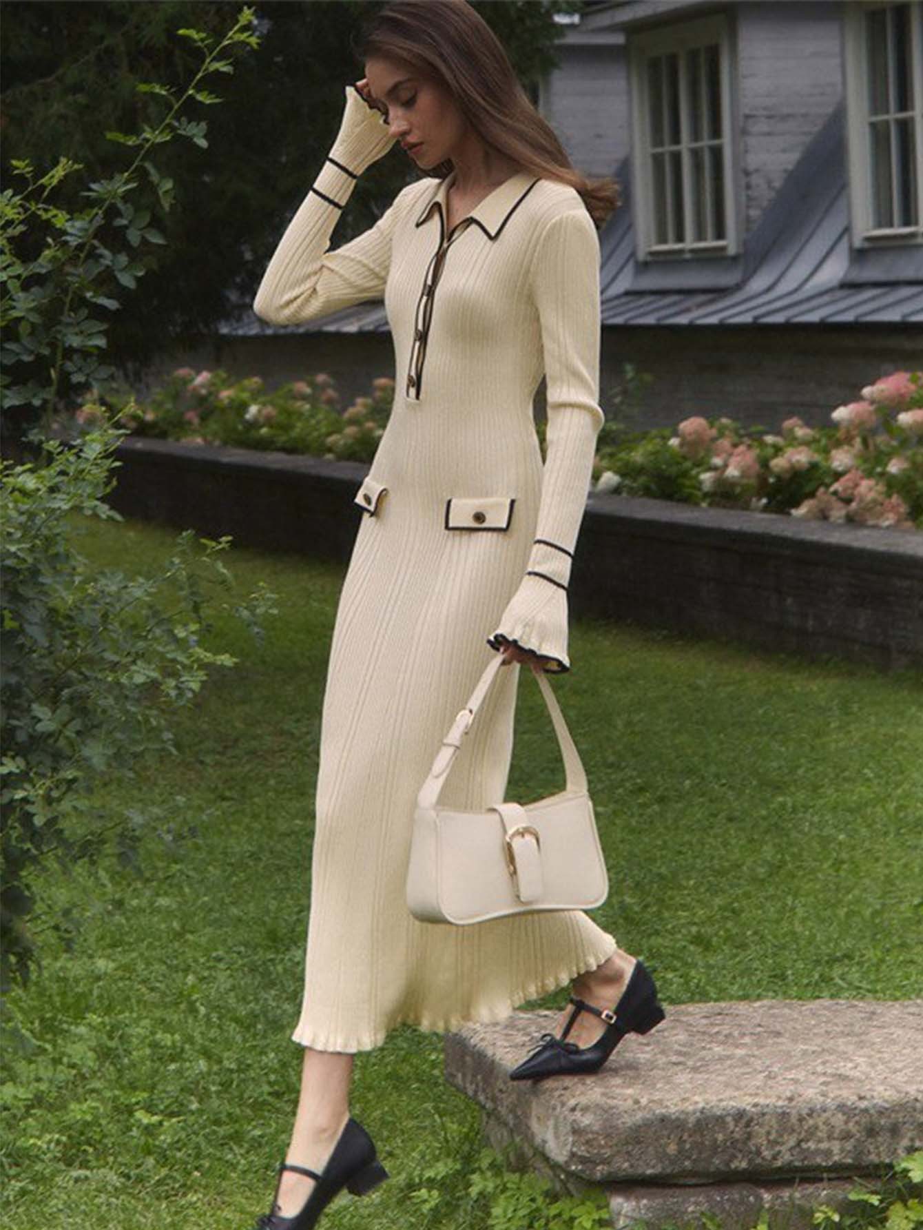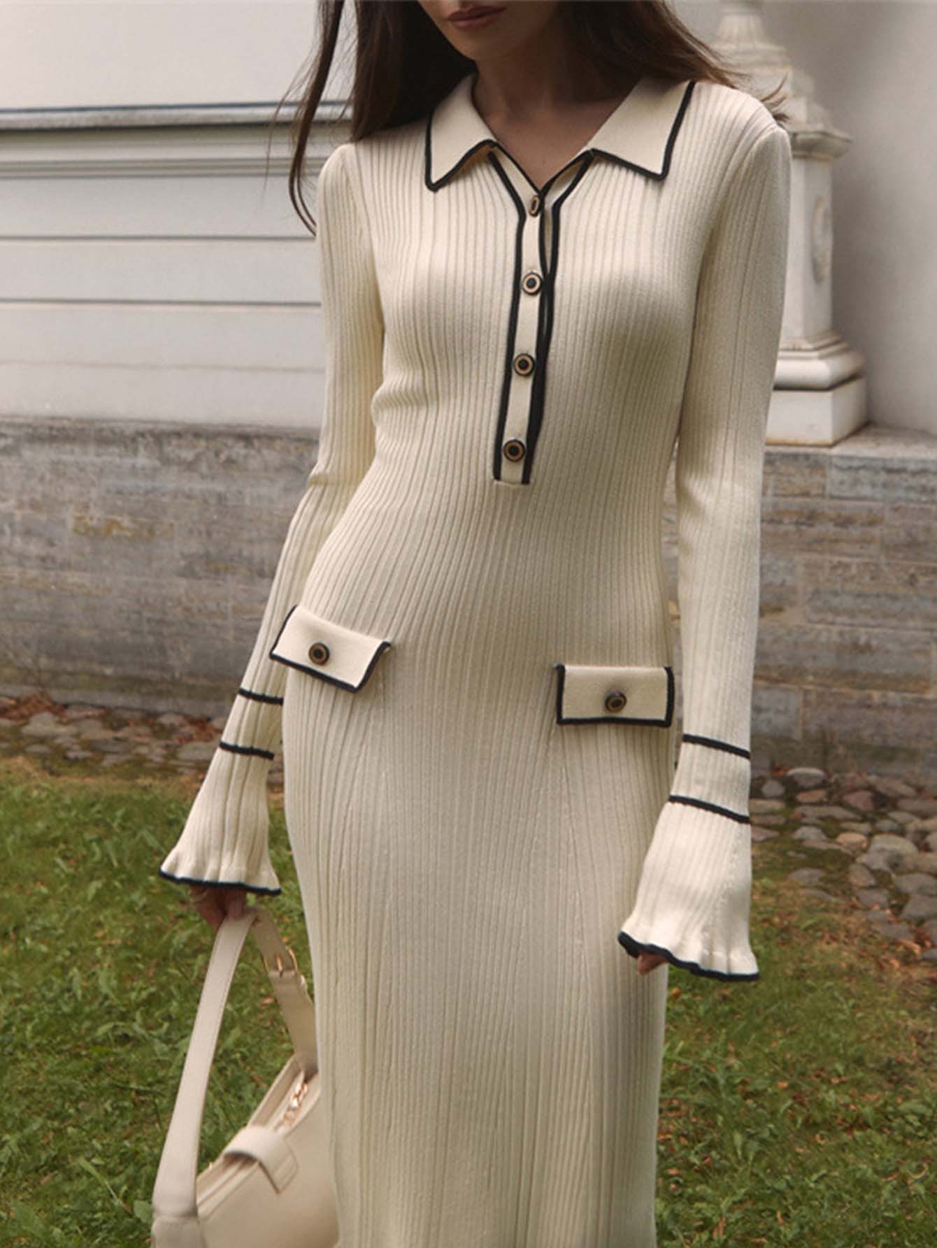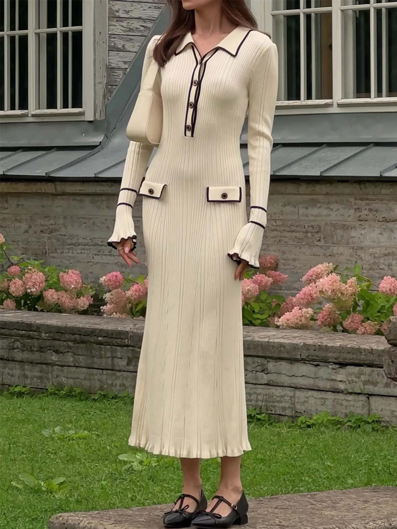 Chanel-inspired Subtly Luxurious Figure-hugging Knit Dress With An Elegant Design