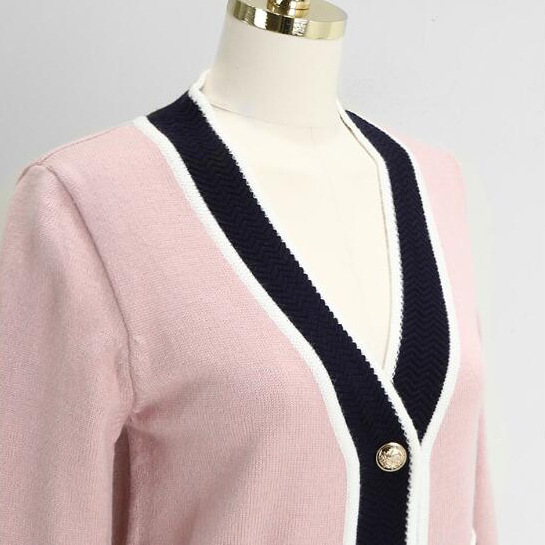 0 Review for Chic Contrasting-Color V-Neck Knitted Cardigan For Women