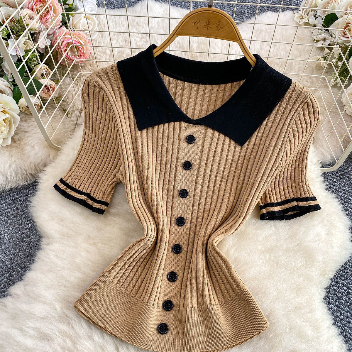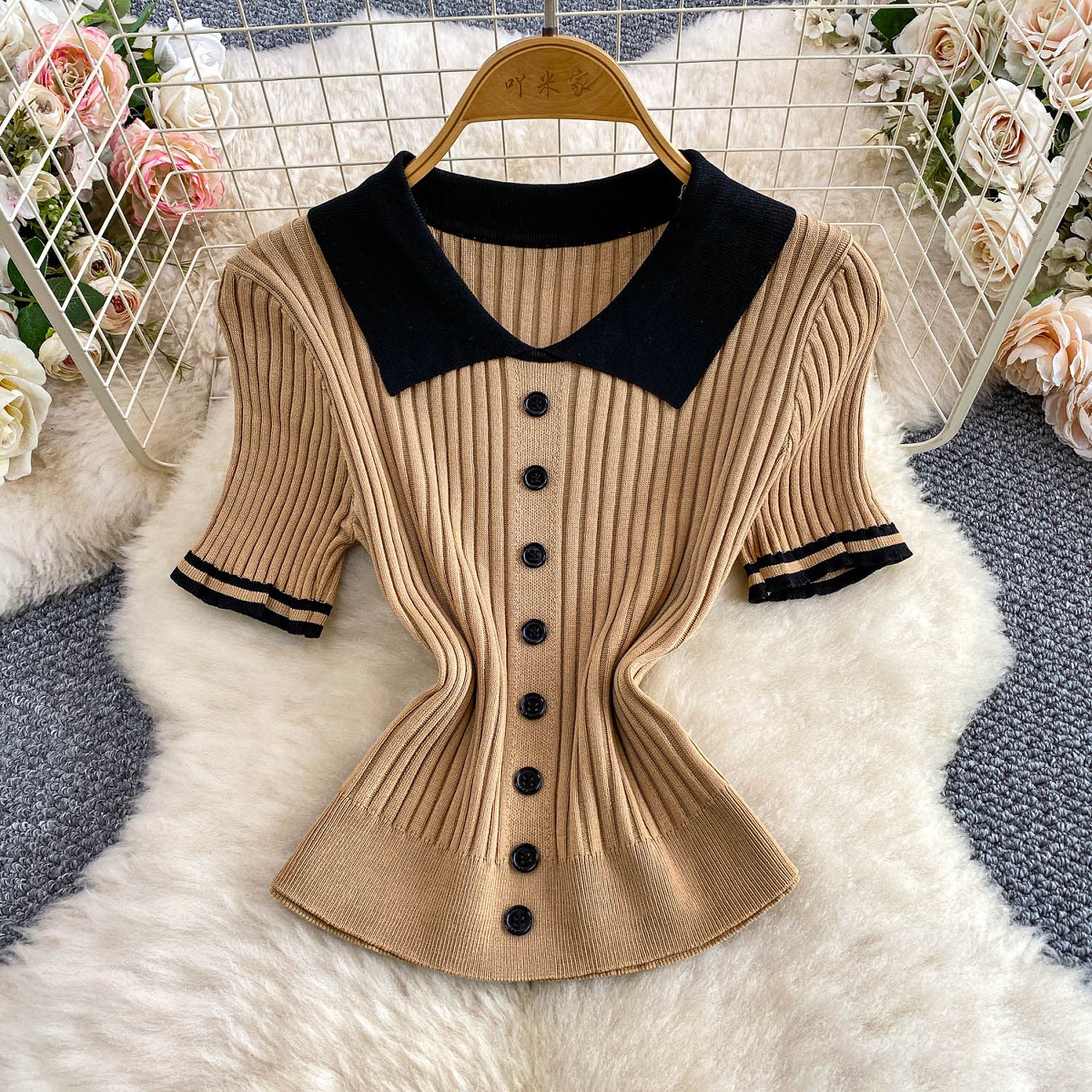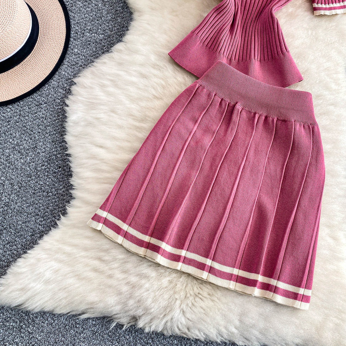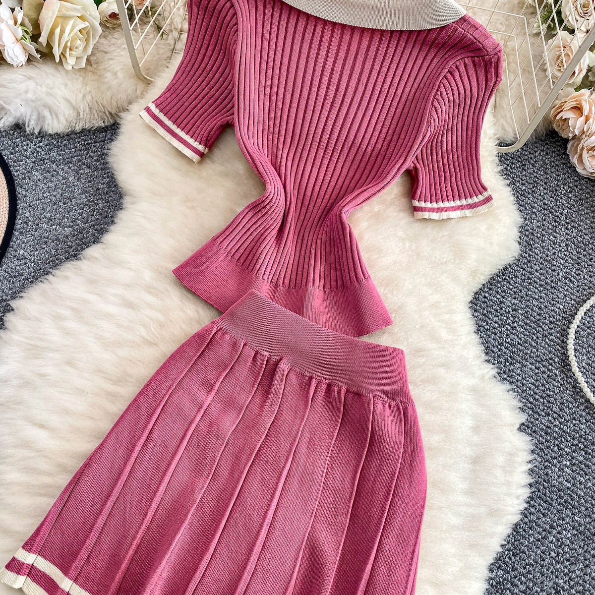 Colors: Light beige two-piece set, light brown two-piece set, black two-piece set, pink two-piece set
