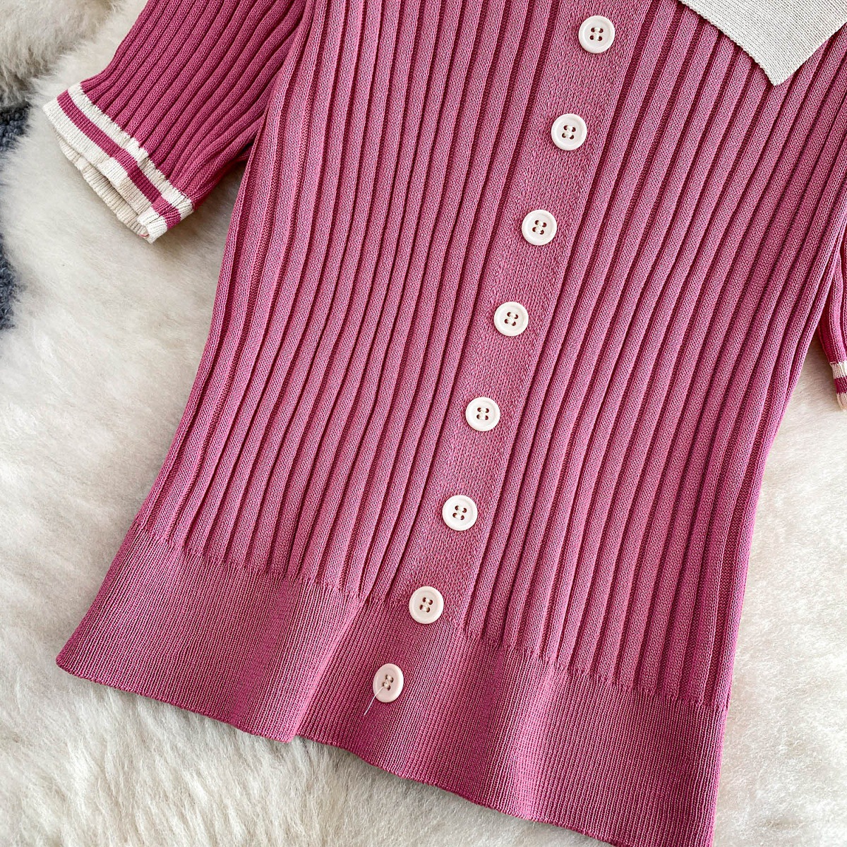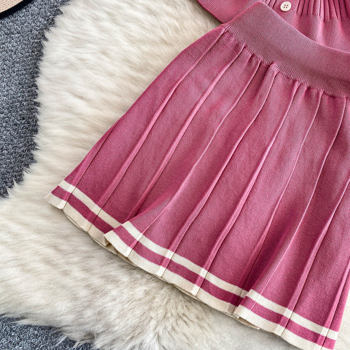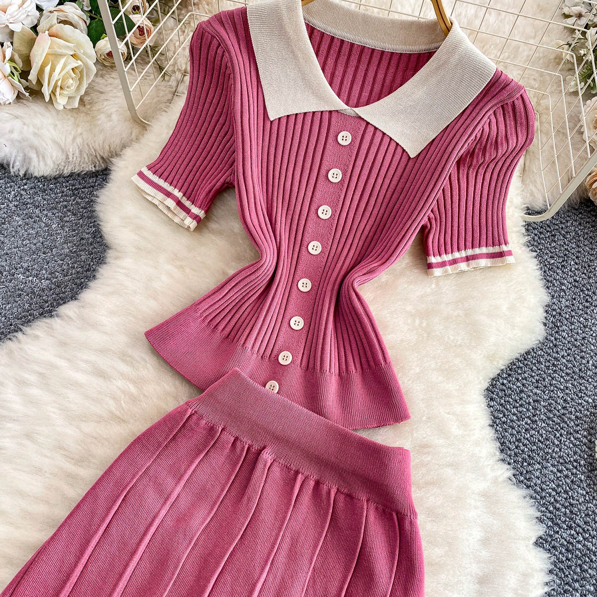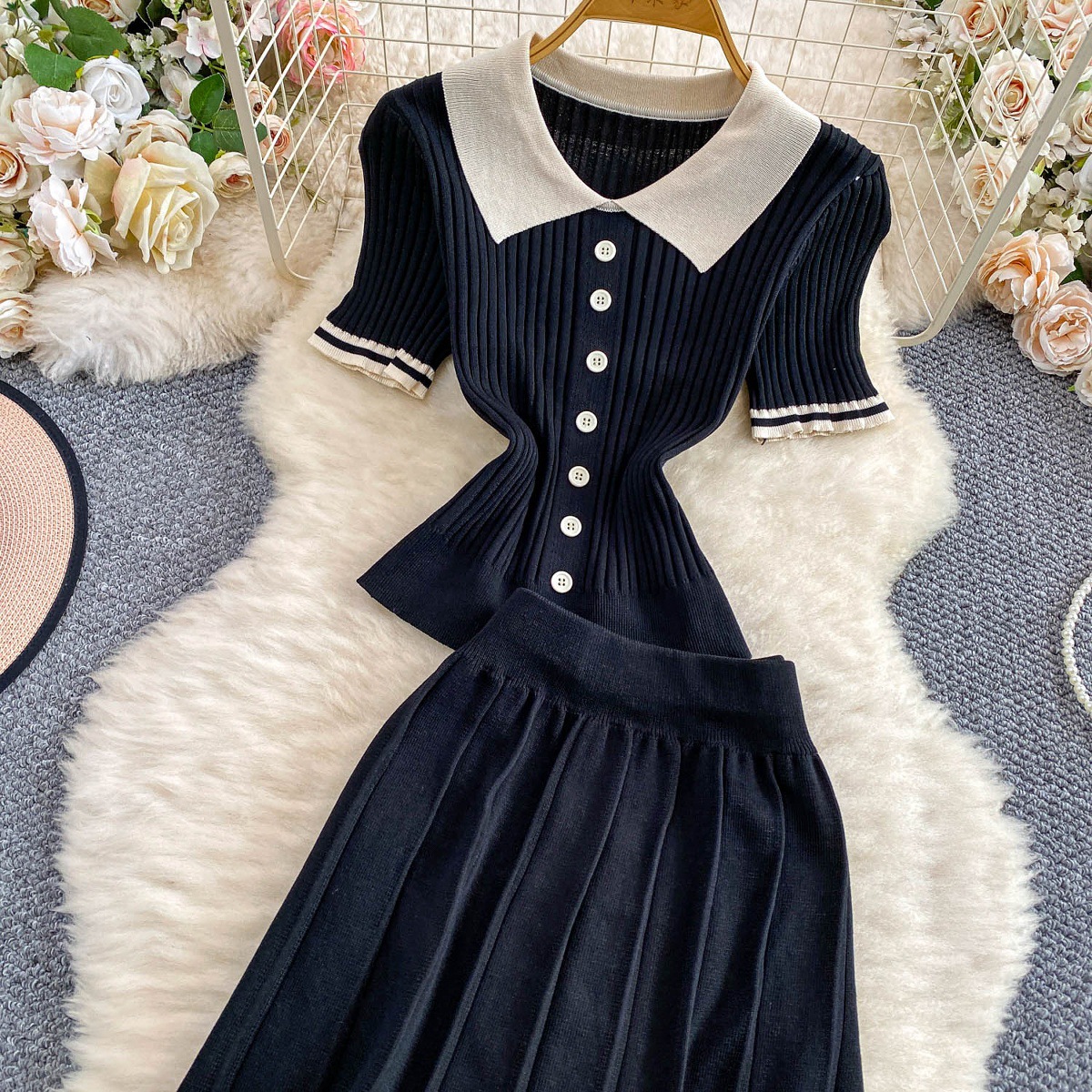 0 Review for Contrast-color Button-front Top With A High-waisted Skirt