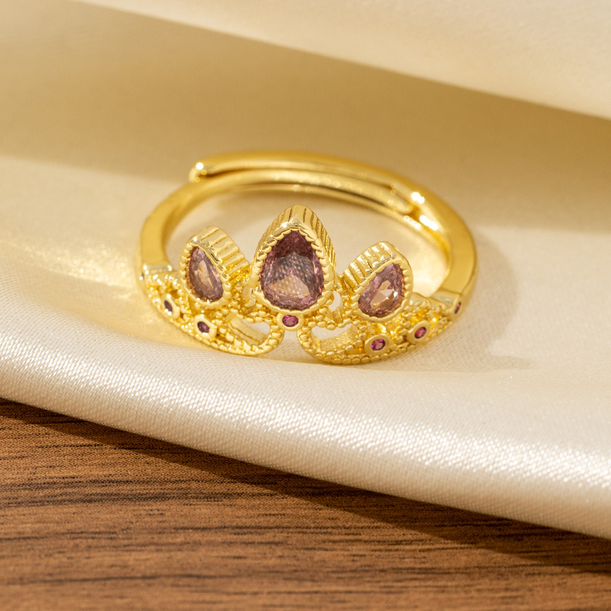 0 Review for Copper Coin Zircon Design Open Adjustable Ring