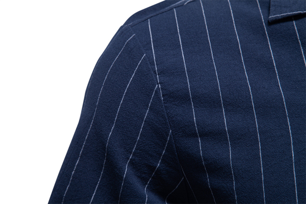 0 Review for Cotton Cuban-collar Striped Shirt For Men