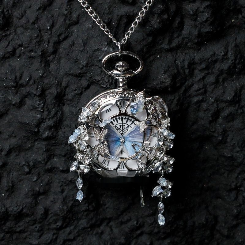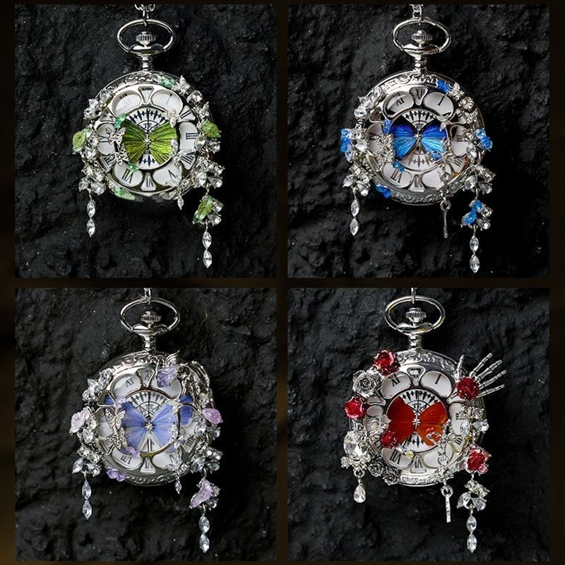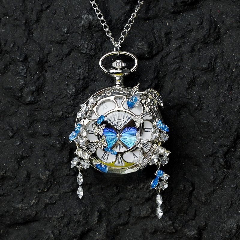 Couples Teal And Green Butterfly Animated Pocket Watch For Graduation Season