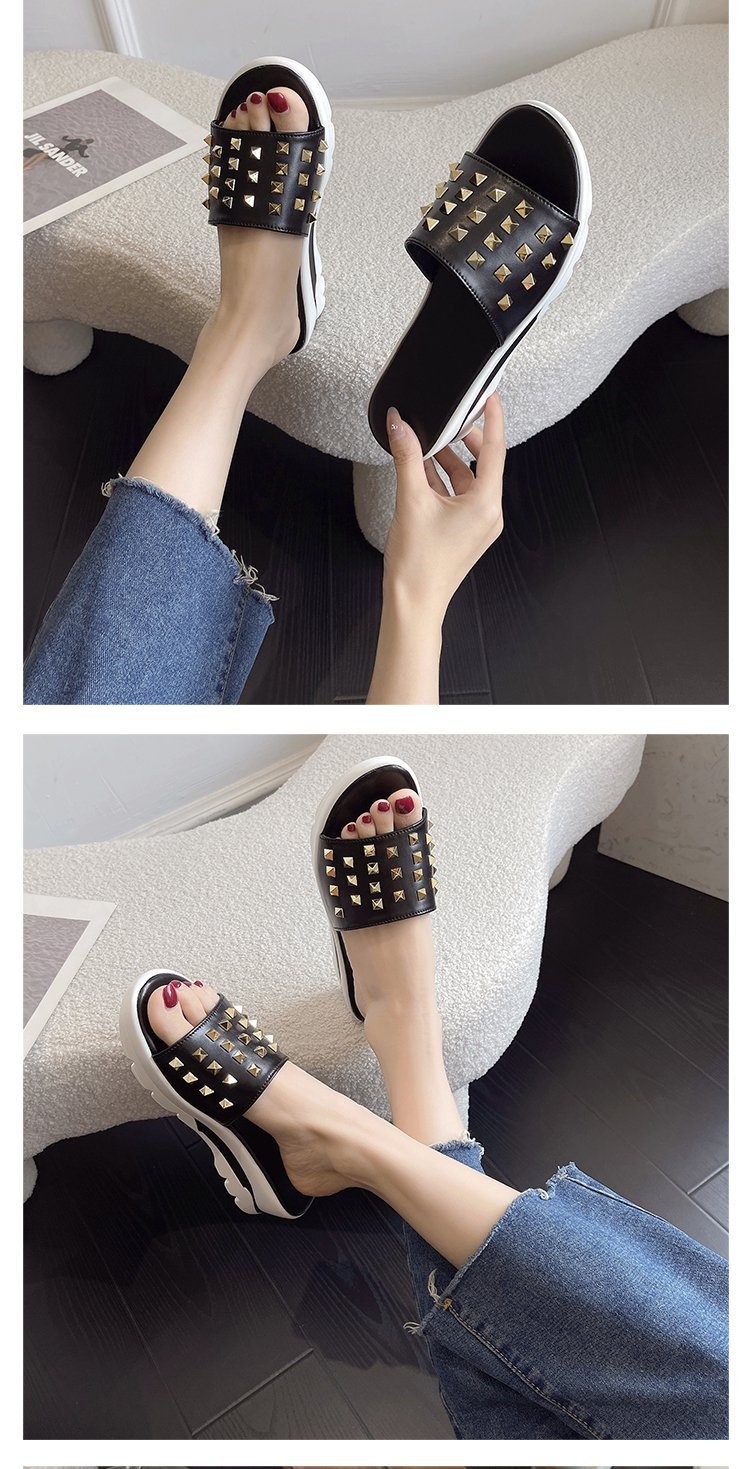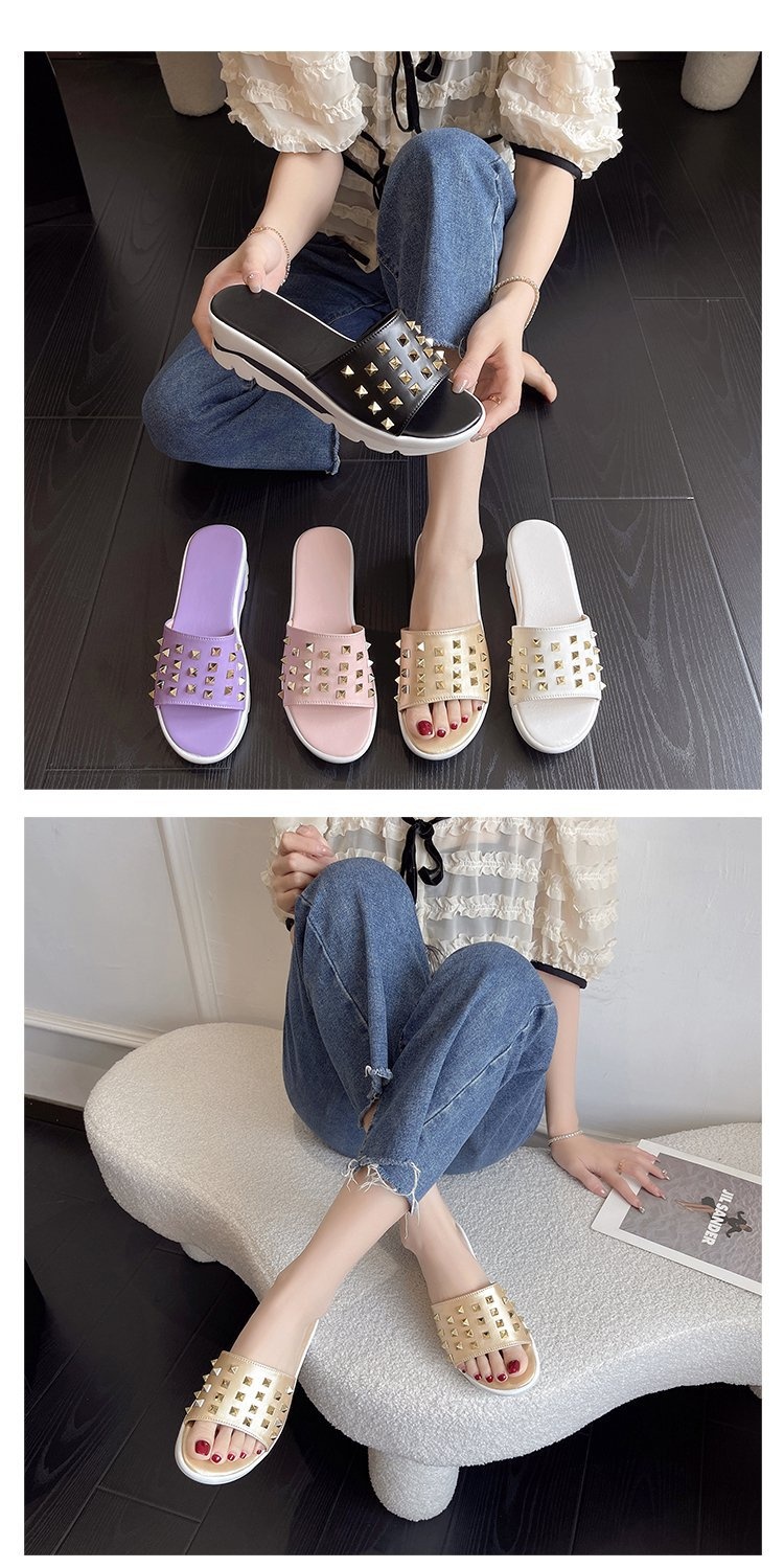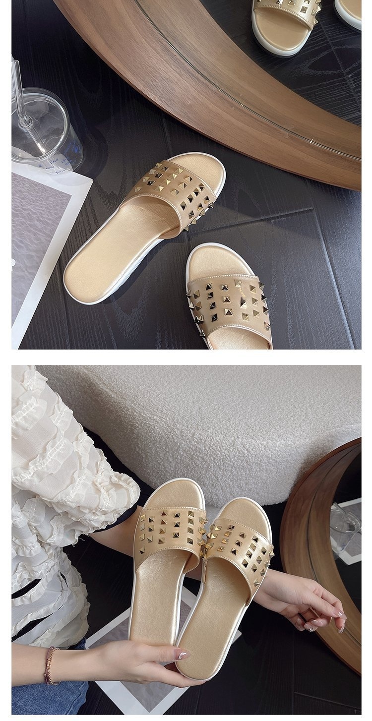 0 Review for Cross-border Plus-size Rivet Leather Slippers Women's Shoes