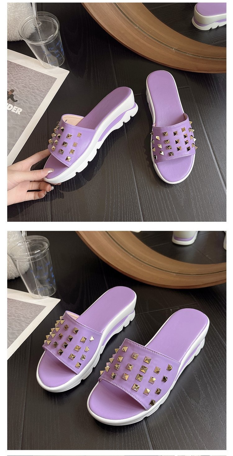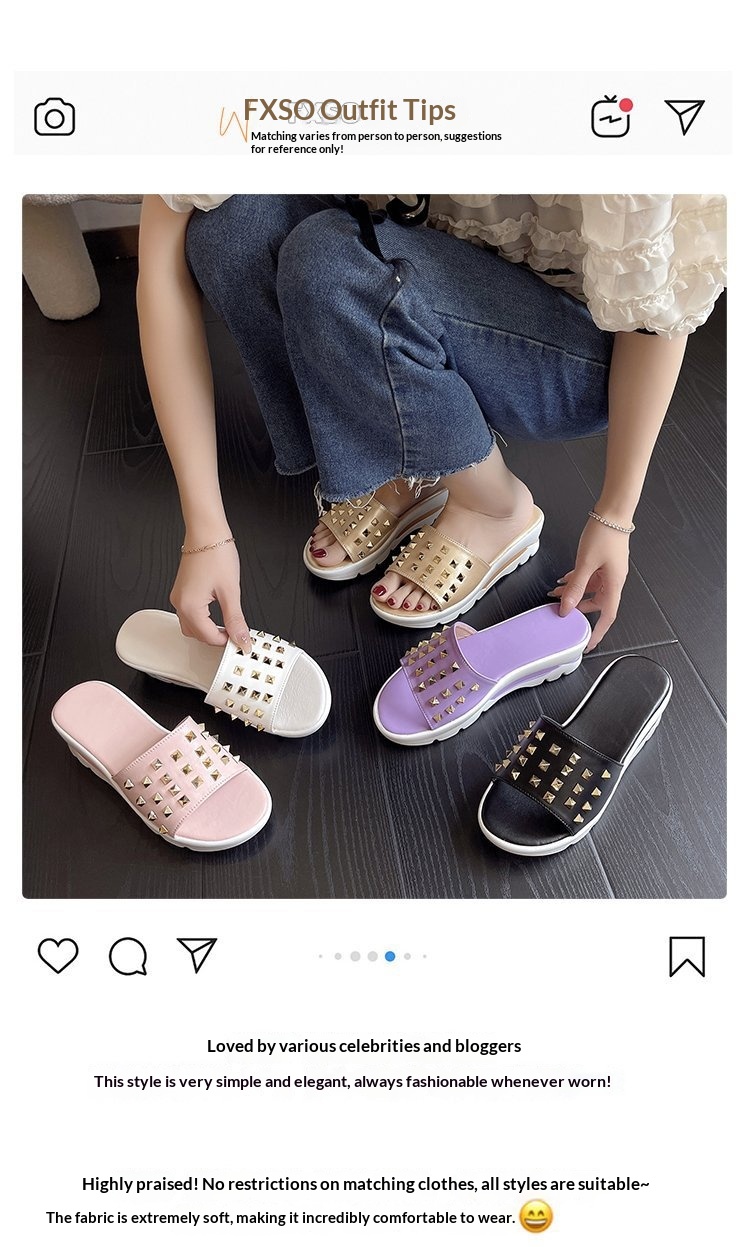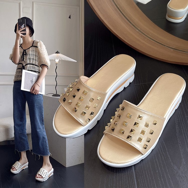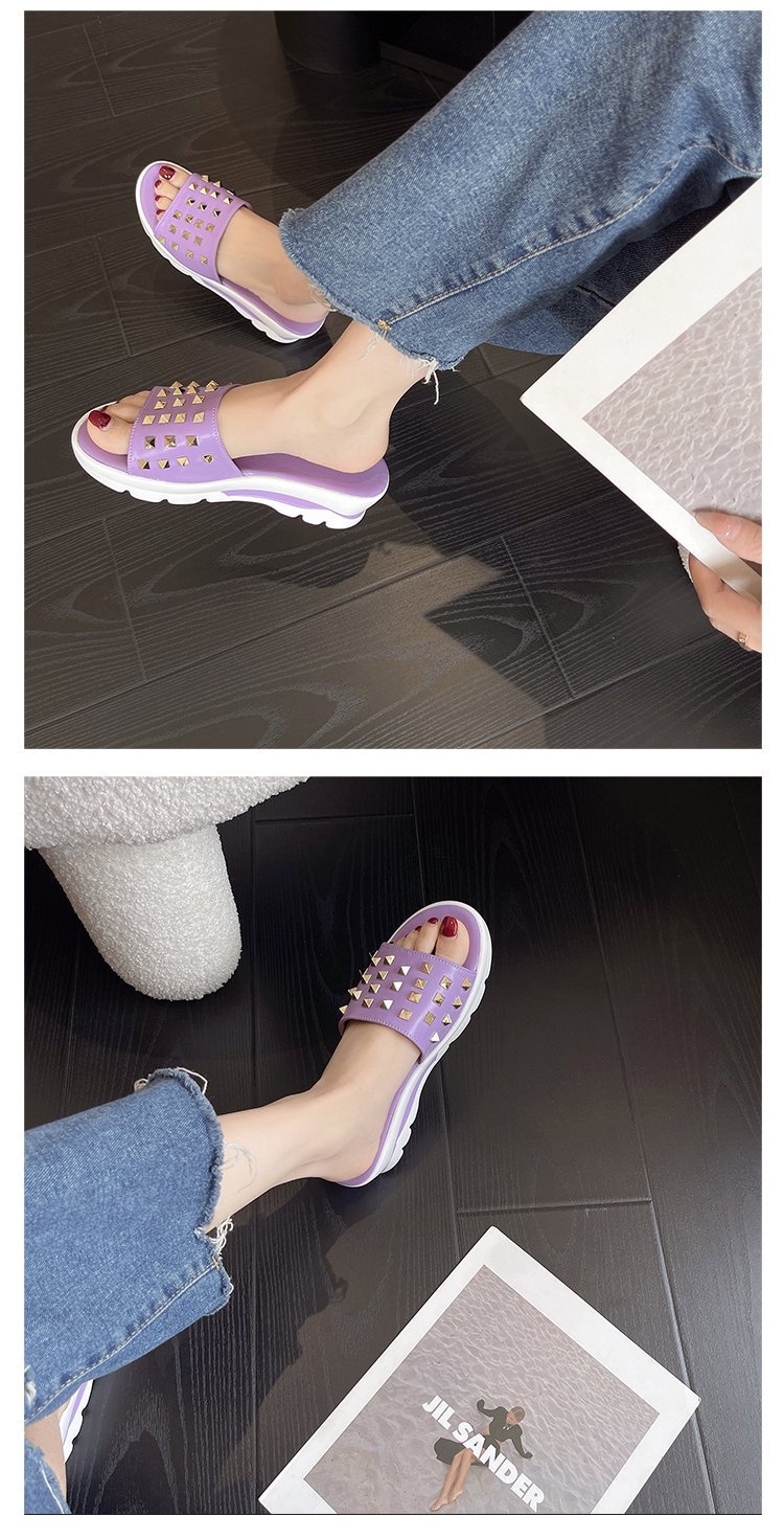 0 Review for Cross-border Plus-size Rivet Leather Slippers Women's Shoes