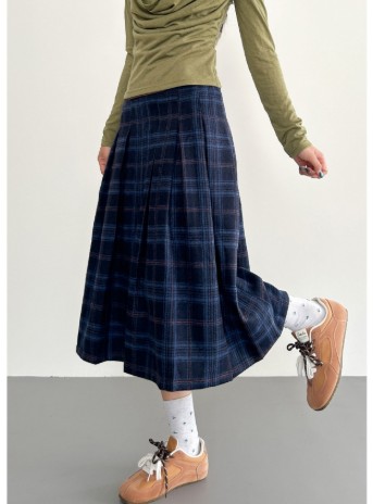 0 Review for Deep Blue Plaid Preppy-Style Womens A-Line Midi Skirt