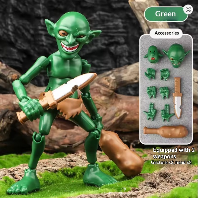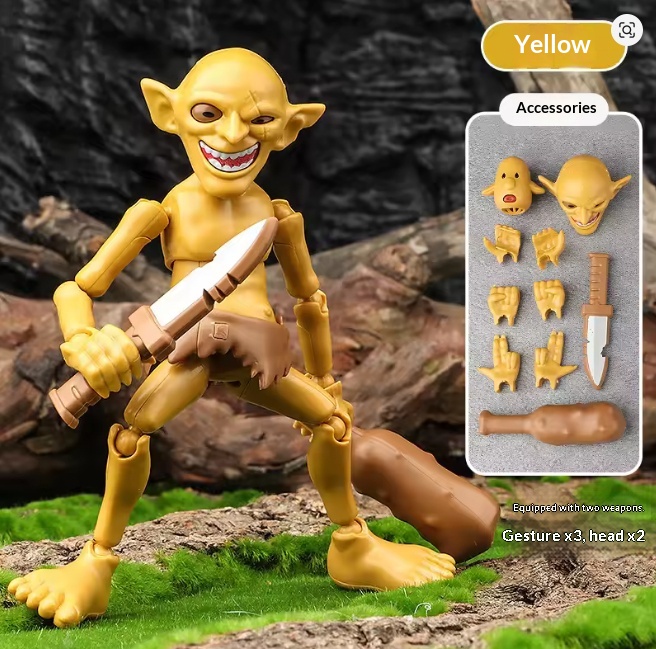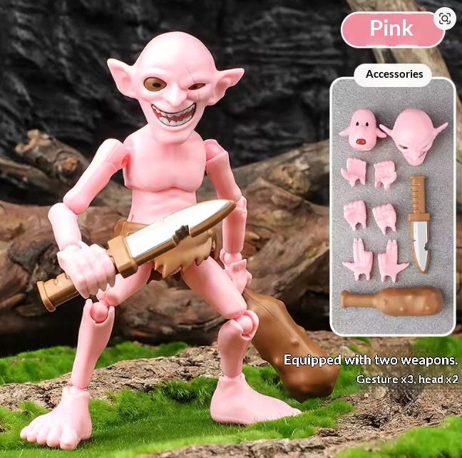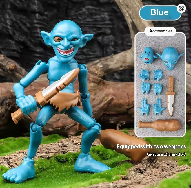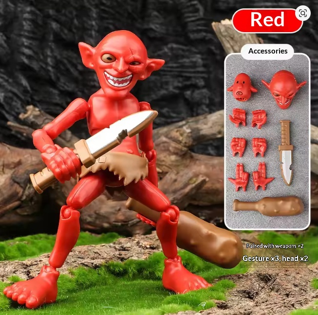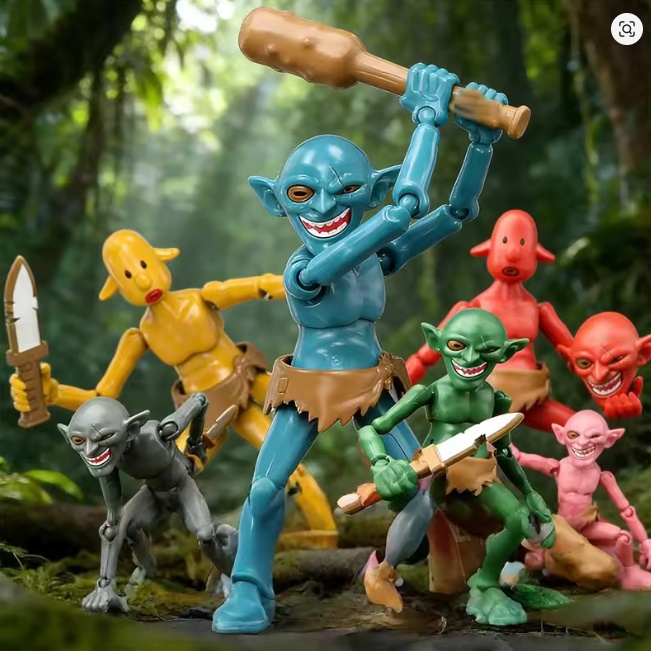 Colors: Green Sprite [2 head sculptures, 2 hand poses, 2 weapons], Red Sprite [2 head sculptures, 2 hand poses, 2 weapons], Pink Goblin [2 head sculptures, 2 hands, 2 weapons], Yellow Goblin [2 head sculptures, 2 hands, 2 weapons], Gray Goblin [2 head sculptures, 2 hand configurations, 2 weapons], Blue Sprite [2 head sculptures, 2 hand configurations, 2 weapons]