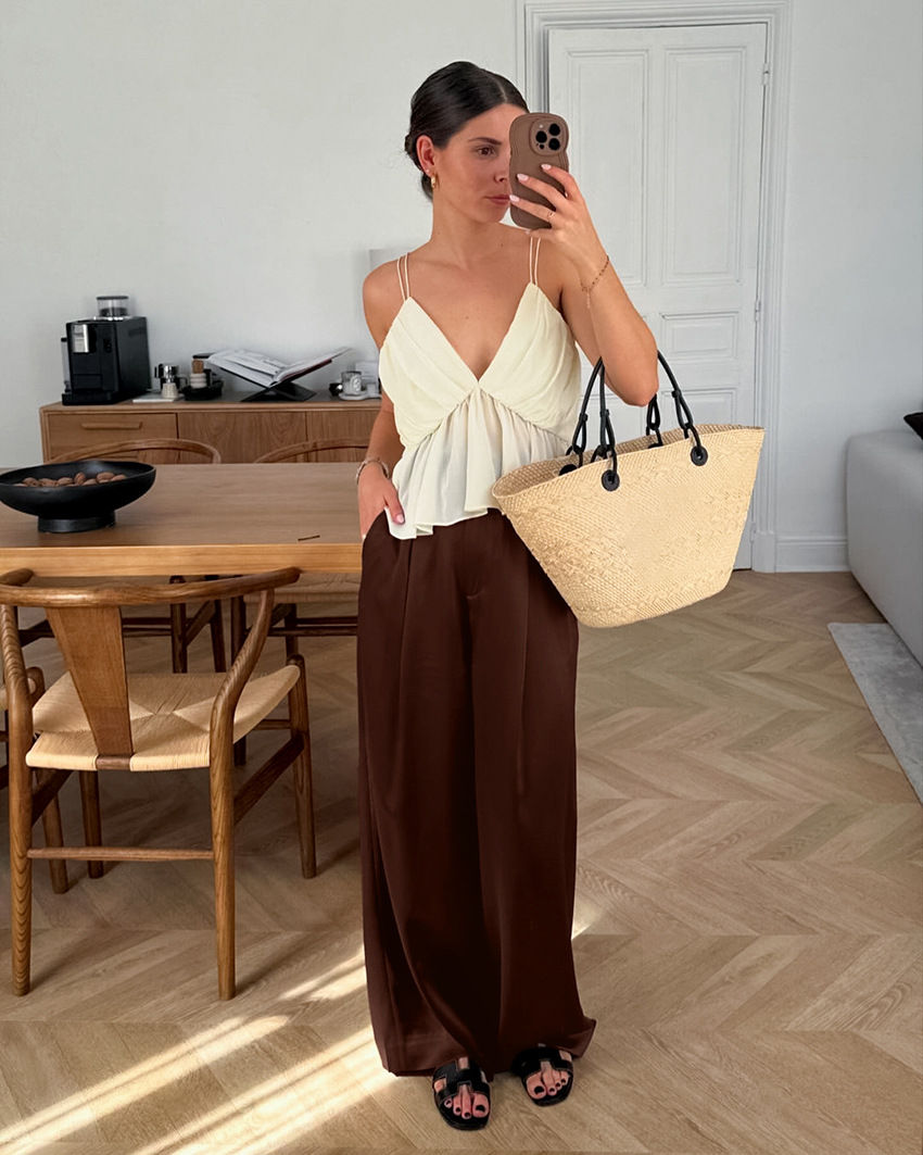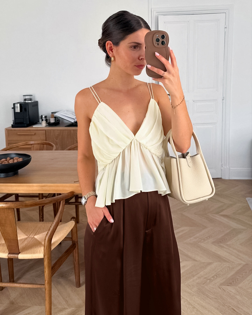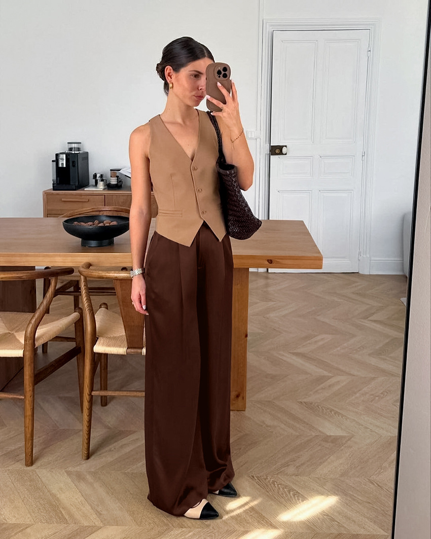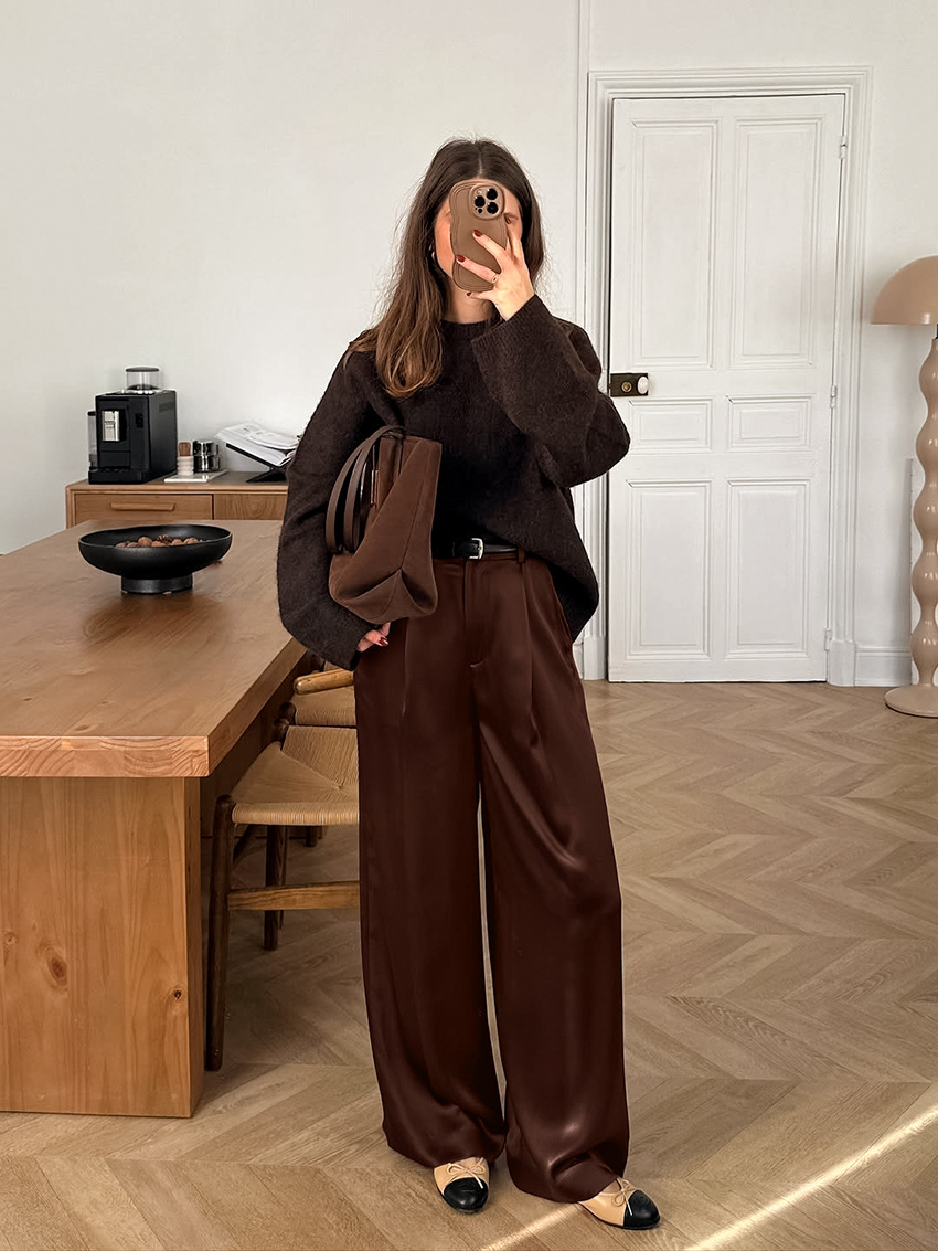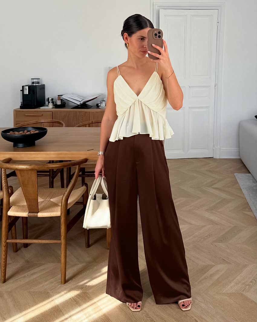 Draped High-waisted Casual-style Chic Slimming Wide-leg Pants For Women