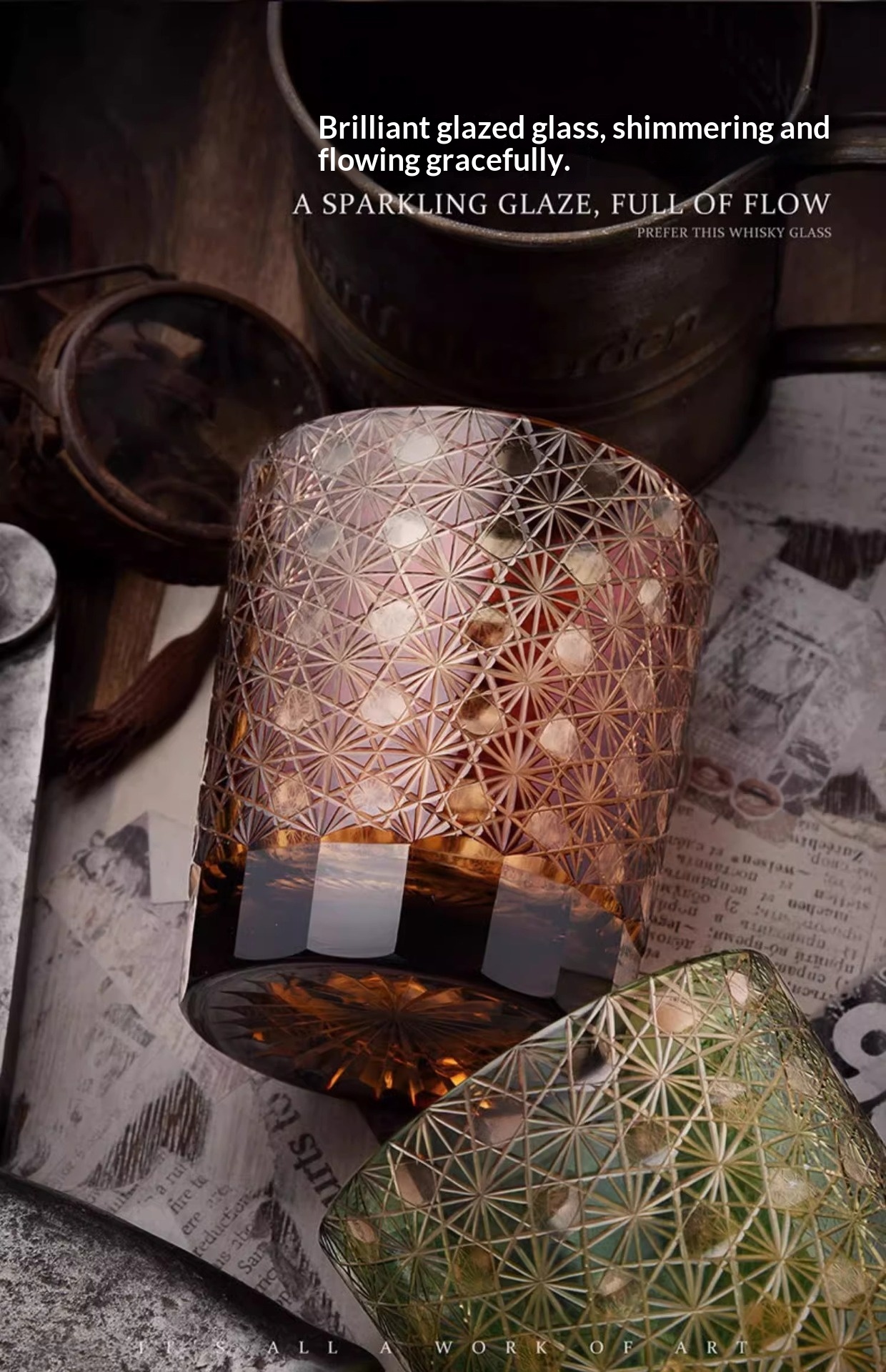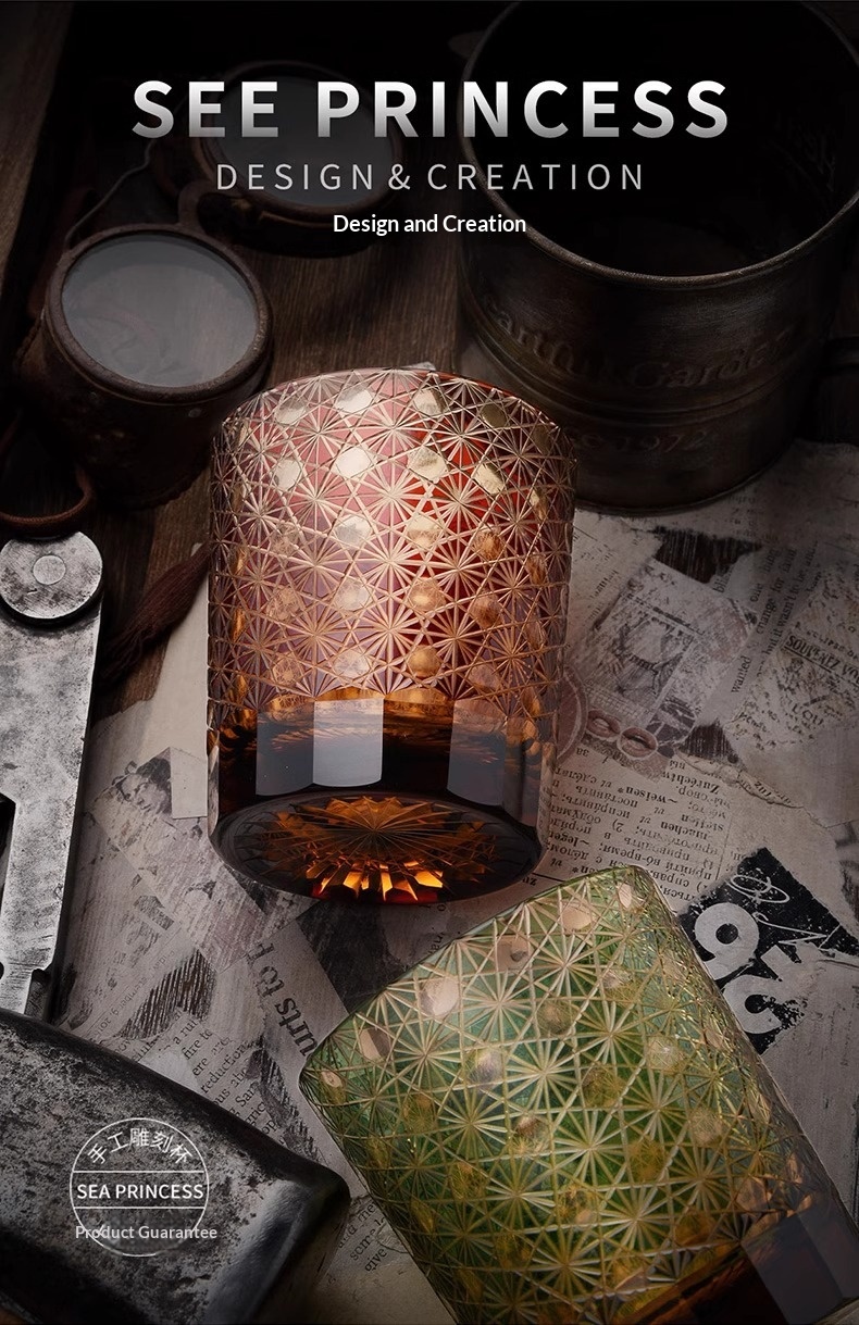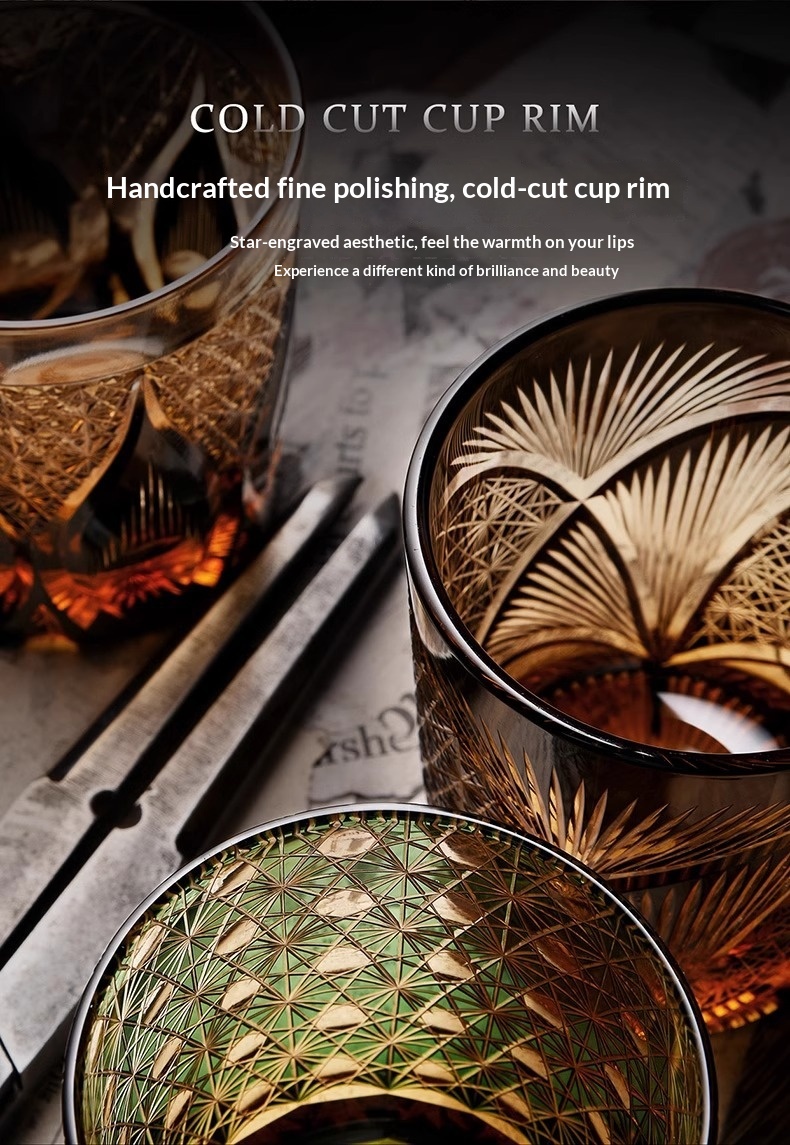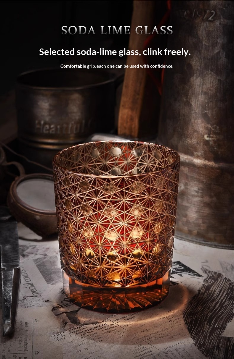 Edo Kiriko Japanese Hand-Carved Liquor Glasses For Home Use Vintage Style