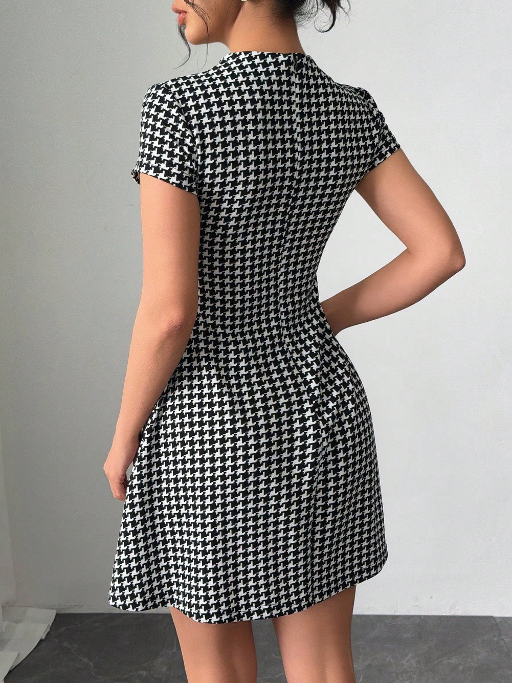 0 Review for Elegant Houndstooth Dress With Fake Pockets