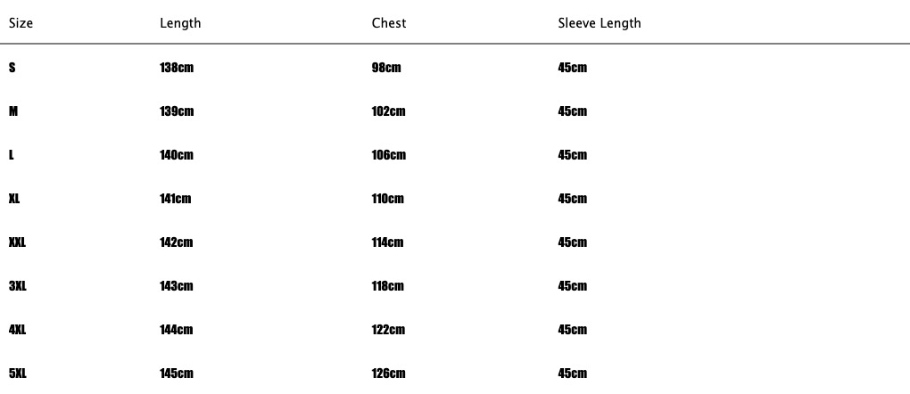 Sizes: S, M, L, XL, XXL, 3XL, 4XL, 5XL