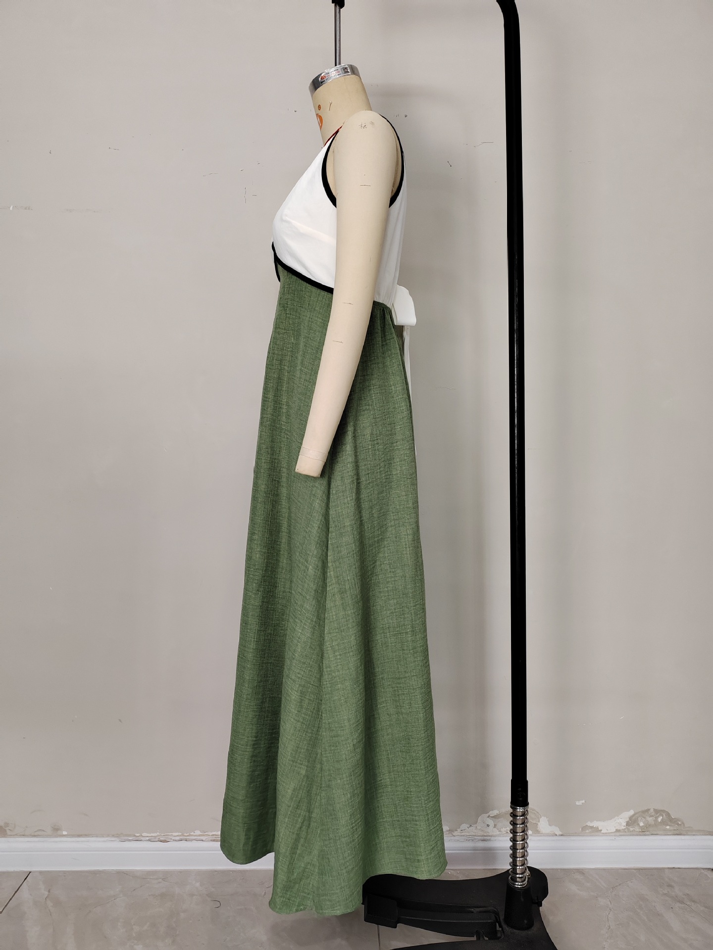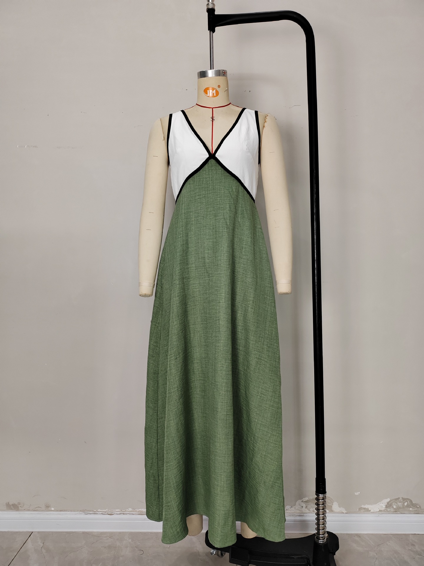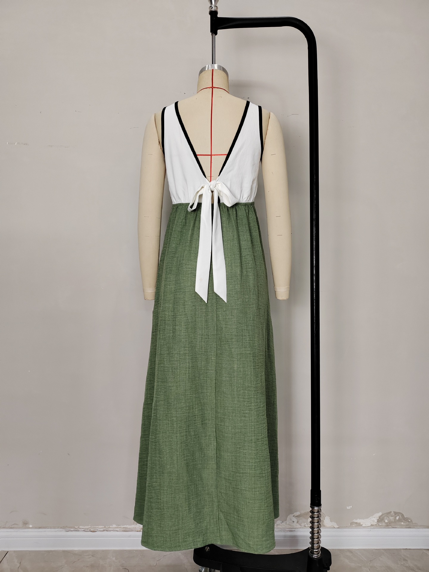 0 Review for Elegant V-neck Contrast-Color Strap Dress