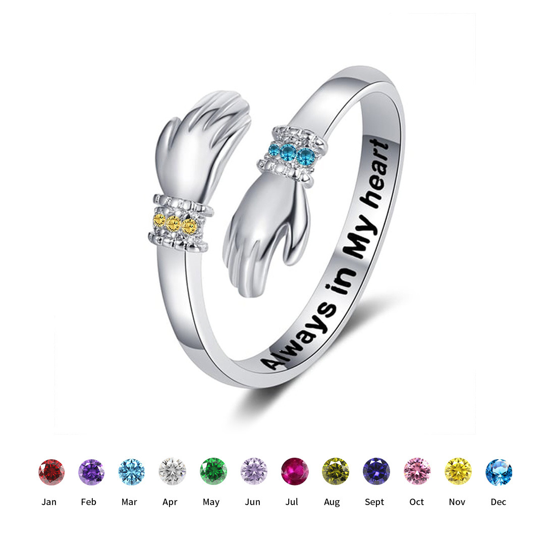 0 Review for Embrace Personalized Birthday Stone Ring With Both Hands